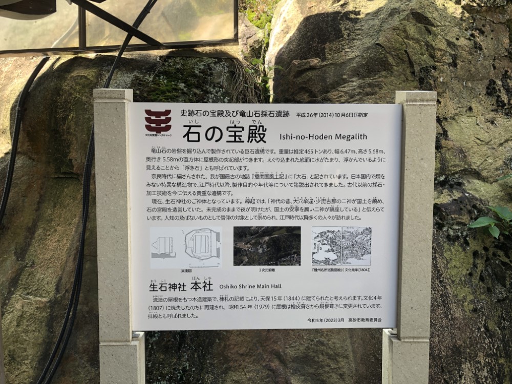 石の宝殿は、国の史跡で横6.4m、高さ5.7m、