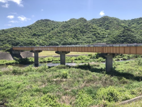 来るときに渡った、鉄橋を横目に和気町の町中を