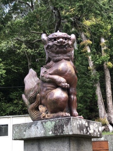 備前焼の狛犬さんも、ちょっぴり悔しそう。