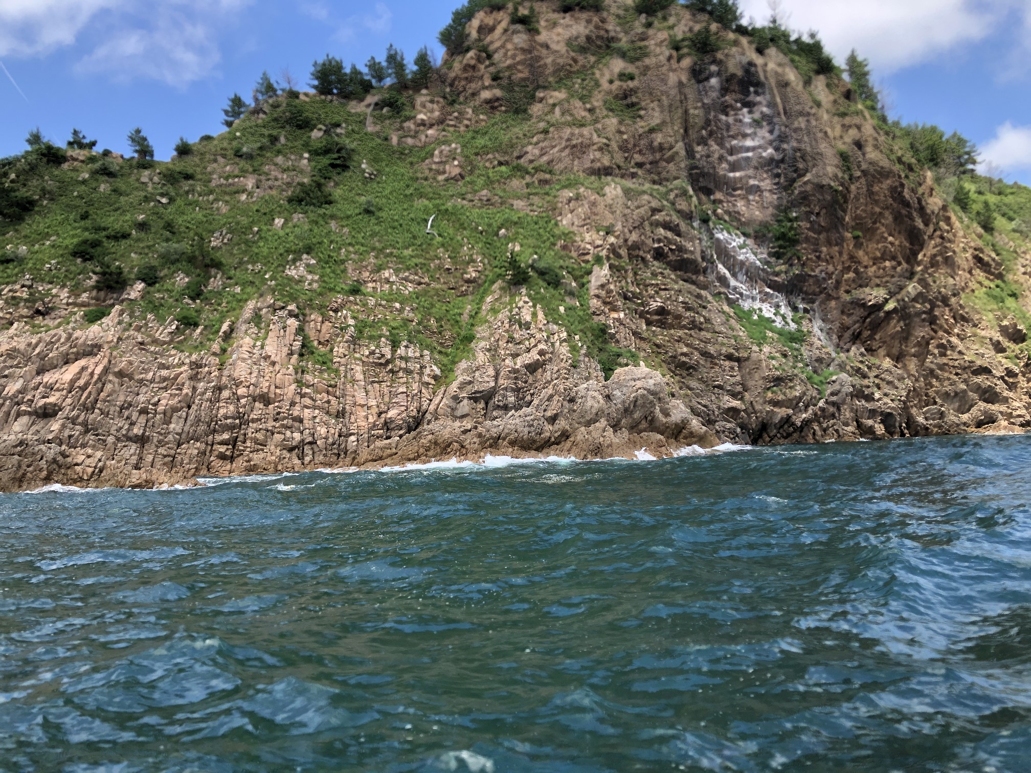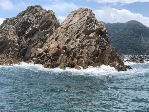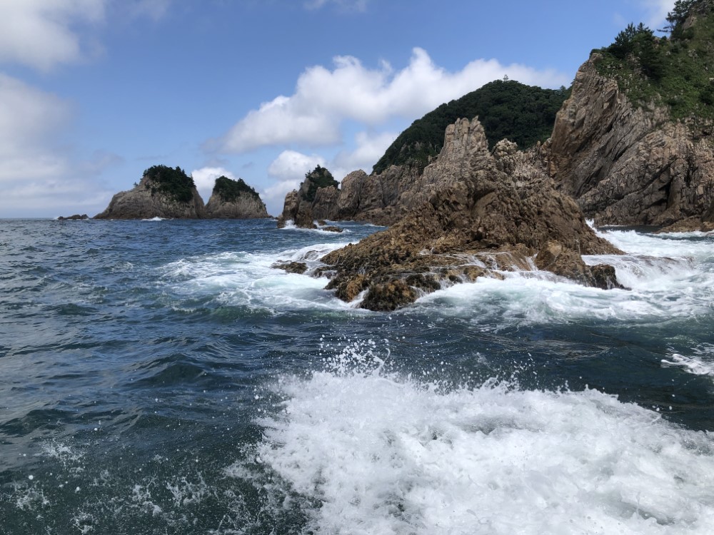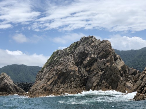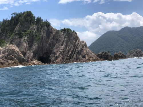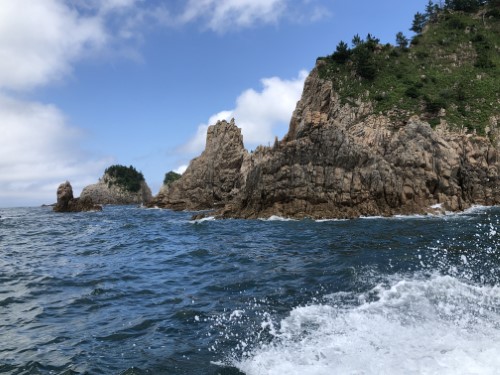 このジオパークを海側から船で巡るのです。