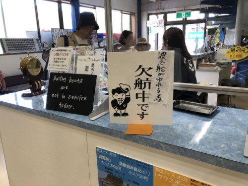 まあ、遊覧船が全便欠航だから誰もおらんなるわね。