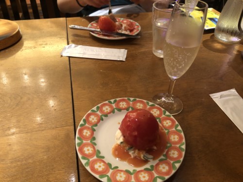 一つ一つ丁寧に湯剥きしたトマトをよく冷やし、