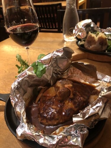 ビーフシチューソースとハンバーグ、シチュー肉を