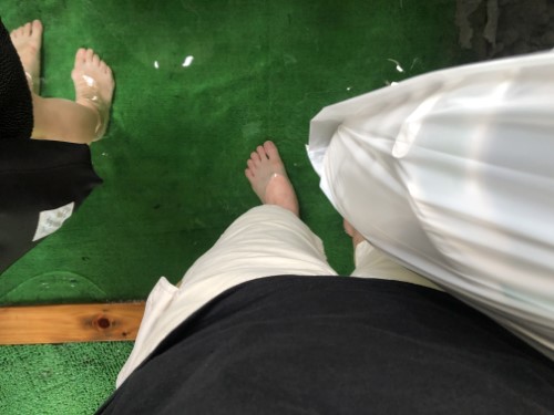 靴とロウソクを手に持ち、御手洗池へと向かいます。