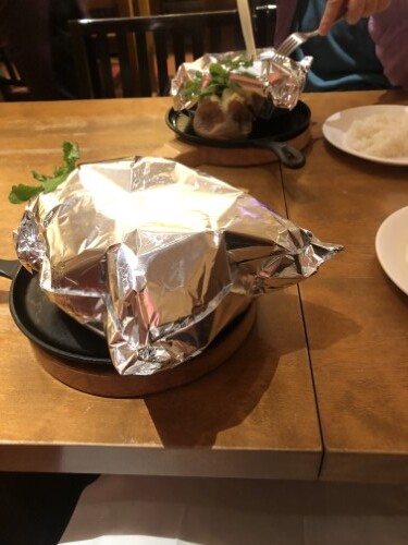 鉄板の上でパンパンに膨れ上がった状態でやって来ました。