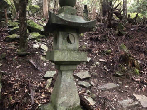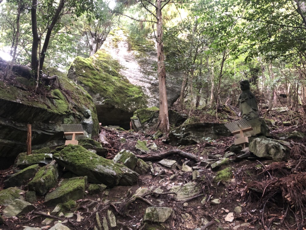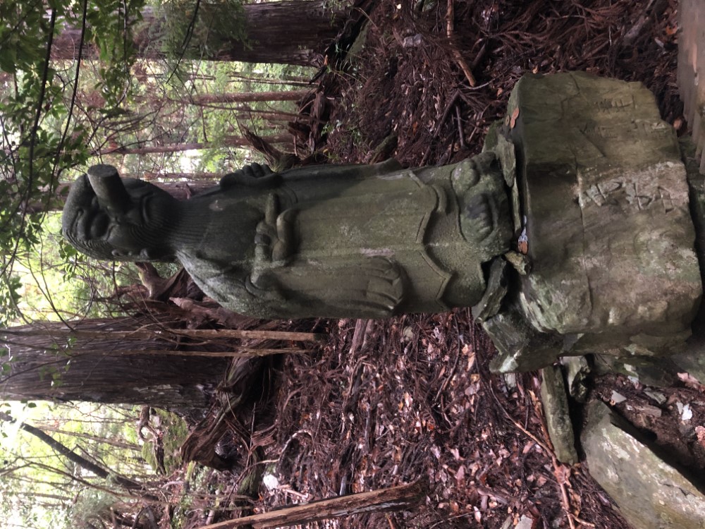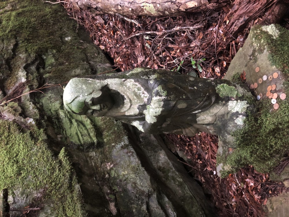 社殿横の山道を登って行くと、謎の石像が次々と現れます。