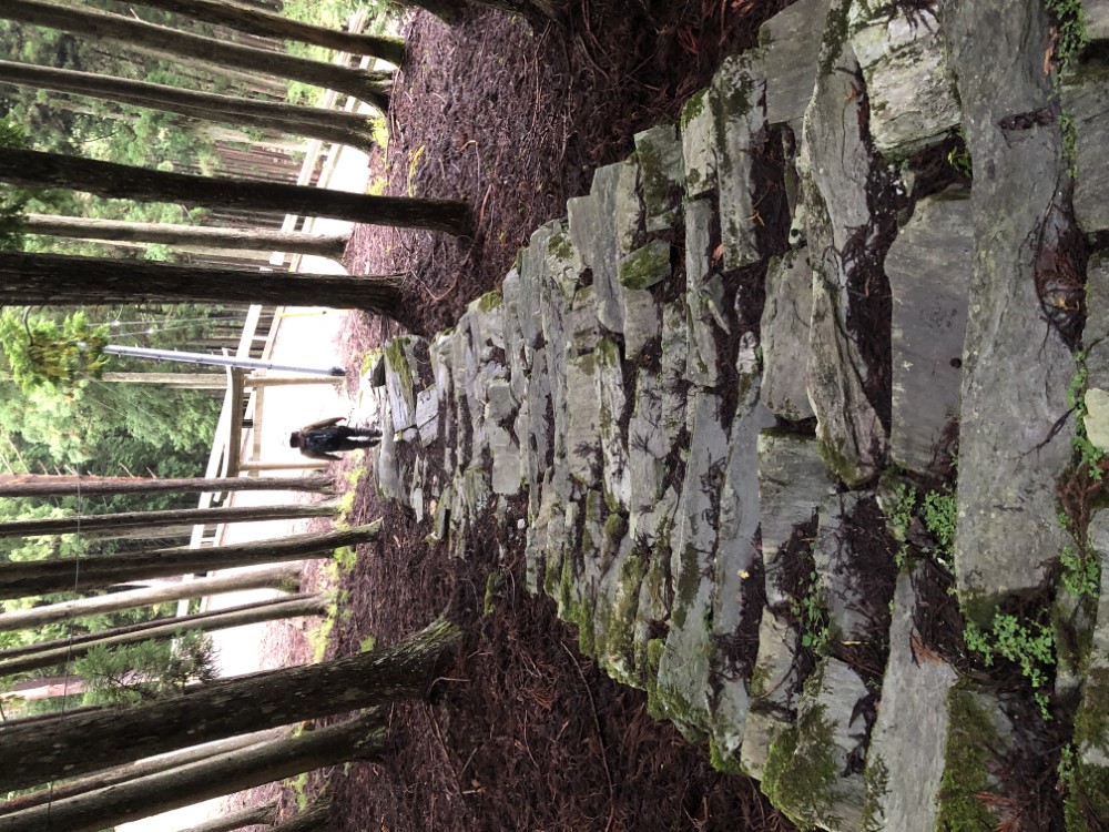 麓には、今も発掘跡とされる石が並べられています。