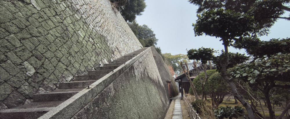 御屋敷裏の石積は、きめ細やかな備前積みによって、