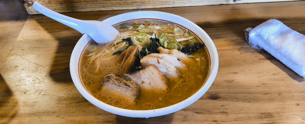 極細麺と肉厚のチャーシューは柔らかめの仕上がりで