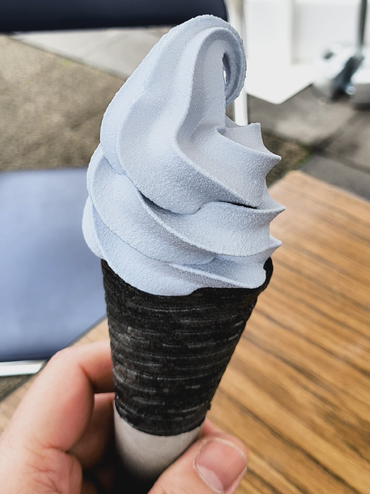 ほんのりデニムカラーの塩ソフトクリーム食べて、