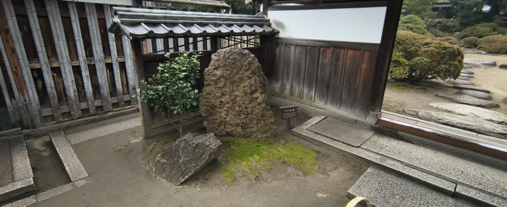 母屋の庭園は、枯滝や苔、奇石を中心とした
