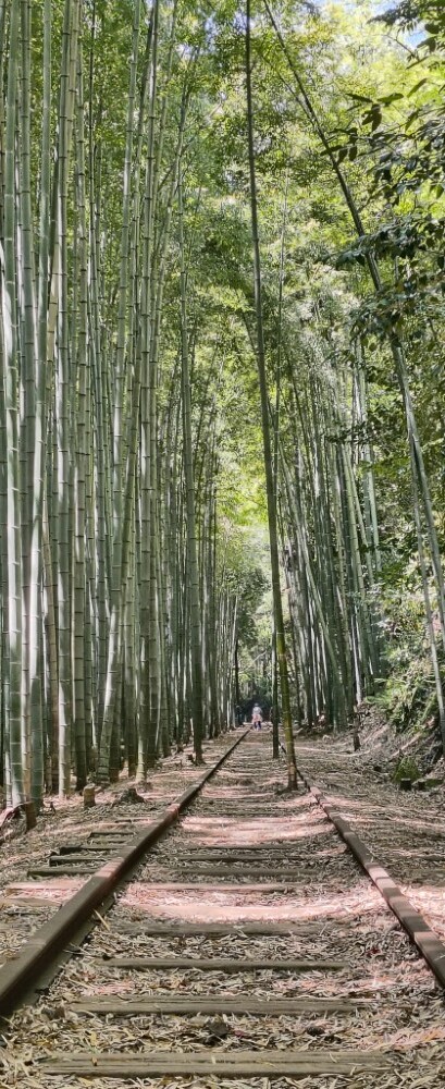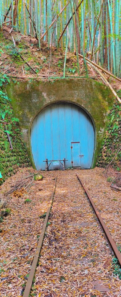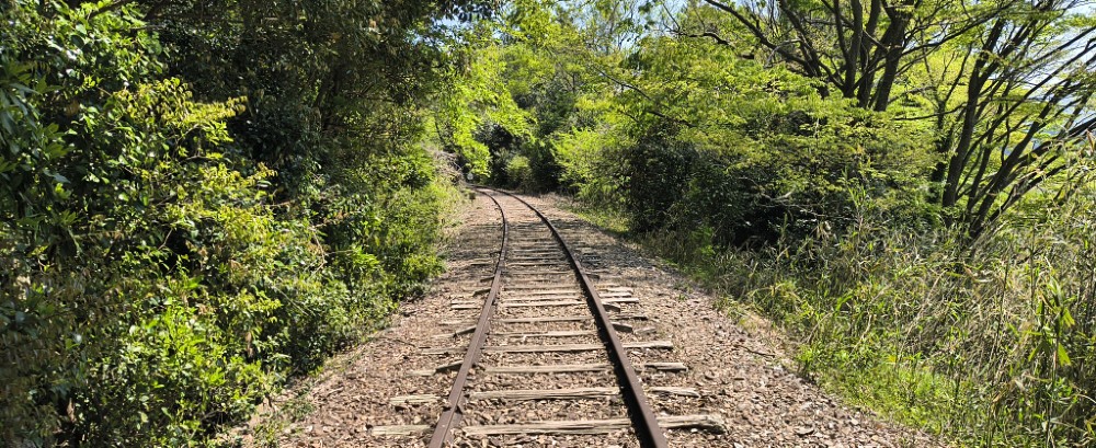 竹林の中に廃線跡があり、