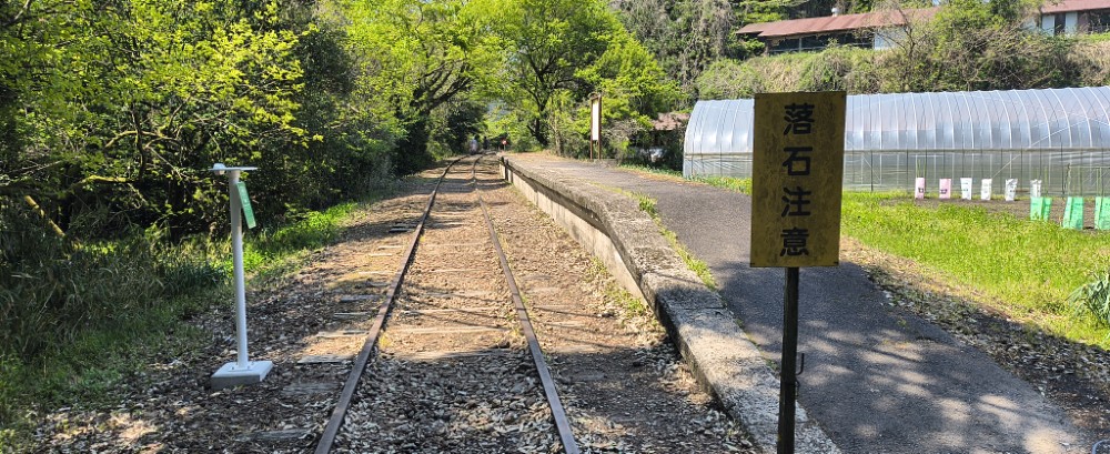 さて、観光案内所から、廃線跡を横目に