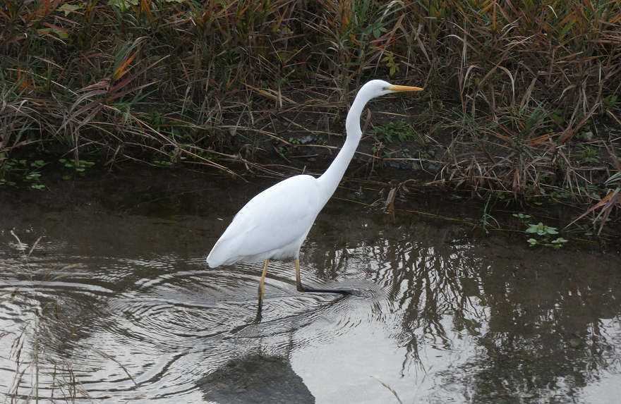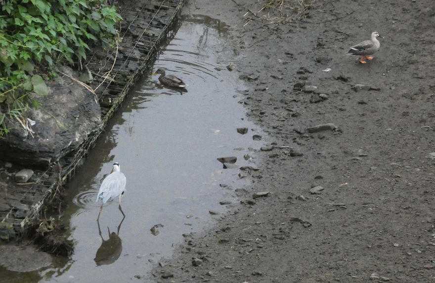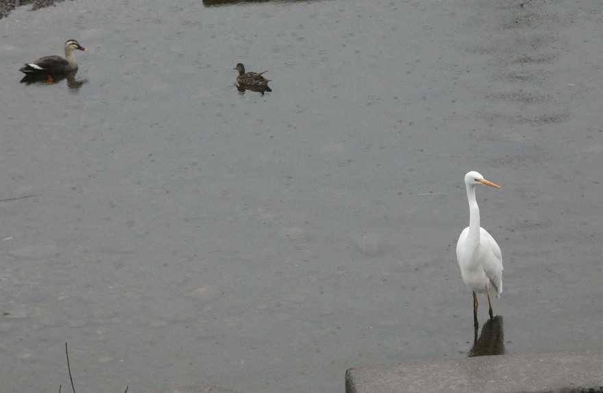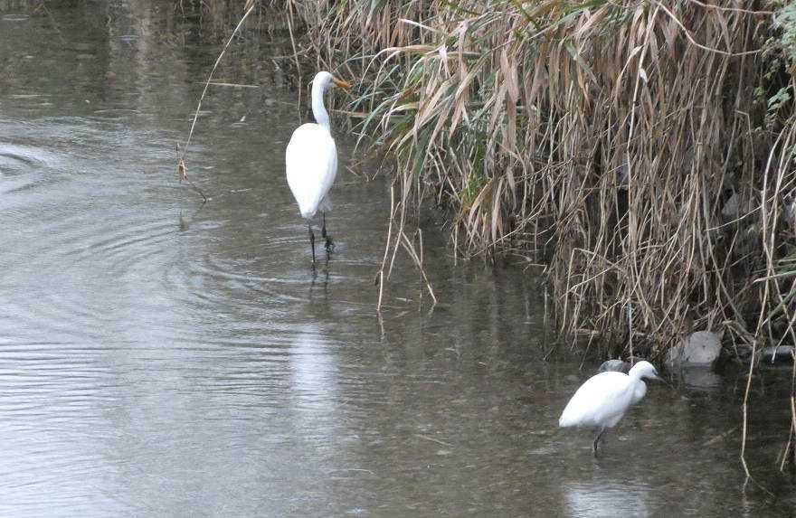 朝6時 曇り 気温15℃。 出がけ時15℃。 戻り時19℃。 5時前にベランダに出て空を見る。ざっと見に雲はあるが切れ間もあるな。ベランダにおりて真上を見たら半月、そしてオリオン座もこいぬ座のシリウスも見えていた。天気予報通りの晴天になると思う。 ところがウォーキングで外に出ると周りは雲だらけ、大山、丹沢、三岳山どころか、そのうちに高尾山も見えなくなってしまった。おいおい。 06:05発~09:10戻りで歩いてきました。 06:17、横川橋の上流側にマガモとダイサギ。 白いので目立つダイサギ。 地味にマガモ。 06:33、南浅川を上がってカンナの花とパンパスグラスの穂。 06:36、五月橋はアオサギ。 07:09、高尾警察まで上がって、干上がった川底で捜し物のダイサギとアオサギ。 07:33、陵南公園の古道橋で折り返すとマガモが1羽。 カルガモとグループで来ていたコガモの一部。 08:34、下って来て市役所北側の鶴巻橋の真ん中で浅川上流側を眺める。 ここにもマガモ。 それからセグロセキレイ。 08:53、戻りの横川橋はマガモとアオサギ。 09:01、北浅川の流れ。 きょうのサイコン距離計。 今年もウォーキングの距離は東京周辺大巡り=武蔵野線→京葉線→りんかい線→京浜東北線→南武線の周回とします。 武蔵野線駅の府中本町駅を出発点として外回りで16周目 南武線の尻手駅、矢向駅、鹿島田駅、平間駅 向河原駅、武蔵小杉駅、武蔵中原駅、武蔵新城駅を通過です。(写真はウィキペディアから借用) 06:16の南浅川流量(横川橋から)水涸れ 06:28の(7キロ先)高尾山頂(水無瀬橋から) 06:59の(6キロ先)高尾山頂(横山橋近くから)南浅川水涸れ 08:36の(60キロ先)富士山頂(鶴巻橋=八王子市役所=から) *きょうの散歩(部屋から部屋) ウォーキングの歩数 :18、000歩(100単位に切捨て)(シッカリ15,756歩) (今月15万歩、今年367万歩) 歩行距離(ハンディGPS):10、100m(50単位に切捨て) (今月84km、今年2,157km) アマ無線QSO :CGX,IAR,AQTさんと439.66八王子レピータで PAL,ERMさんと439.64横浜白山レピータで 今月の劇場映画鑑賞本数: 2 今年の劇場映画鑑賞本数: 50