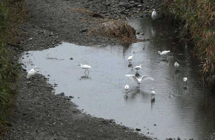 朝6時 曇り 気温11℃。 出がけ時11℃。 戻り時13℃。 5時前の空を見上げても辺りは夜。空模様も分からない。 歩き出してのお空は曇天。確か晴れの天気予報だったのに寒い。そのうちに雨。おやおや。 06:10発~08:20戻りで歩いてきました。 06:19、南浅川に着くとダイサギが待っていた。 06:26、横川橋上流側水たまりにコサギが集まっていた。持ち帰った絵を見るとダイサギとアオサギが混じる。 06:53、南浅川を上がって長房トイレの上流側のカワセミ。 07:26、下って来てハクセキレイ。 07:29、アオサギ。 07:43、セグロセキレイ。 07:49、市役所北側の鶴巻橋の真ん中で浅川上流側を眺める。 08:10、北浅川の流れ。 きょうのハンディGPS。 今年もウォーキングの距離は東京周辺大巡り=武蔵野線→京葉線→りんかい線→京浜東北線→南武線の周回とします。 武蔵野線駅の府中本町駅を出発点として外回りで17周目 武蔵野線駅の東松戸駅、市川大野駅、船橋法典駅を通過です。(写真はウィキペディアから借用) 06:23の南浅川流量(横川橋から)水涸れ 06:36の(7キロ先)高尾山頂(水無瀬橋から) 07:06の(6キロ先)高尾山頂(横山橋近くから)南浅川水涸れ 07:51の(60キロ先)富士山頂(鶴巻橋=八王子市役所=から) *きょうの散歩(部屋から部屋) ウォーキングの歩数 :13、300歩(100単位に切捨て)(シッカリ10,904歩) (今月30万歩、今年383万歩) 歩行距離(ハンディGPS): 7、600m(50単位に切捨て) (今月171km、今年2,244km) アマ無線QSO :IAR,ERM,AQT,FNB,CGXさんと439.66八王子レピータで 今月の劇場映画鑑賞本数: 8 今年の劇場映画鑑賞本数: 56