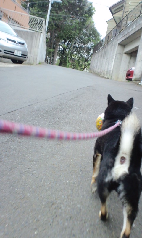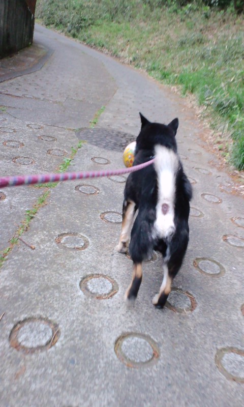 坂道の下でチビッコの忘れ物らしきボールを発見。