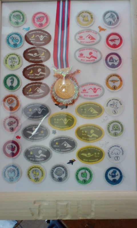 私が学校に向かう時についでに大会新記録を出した時のメダルも持って行きました。