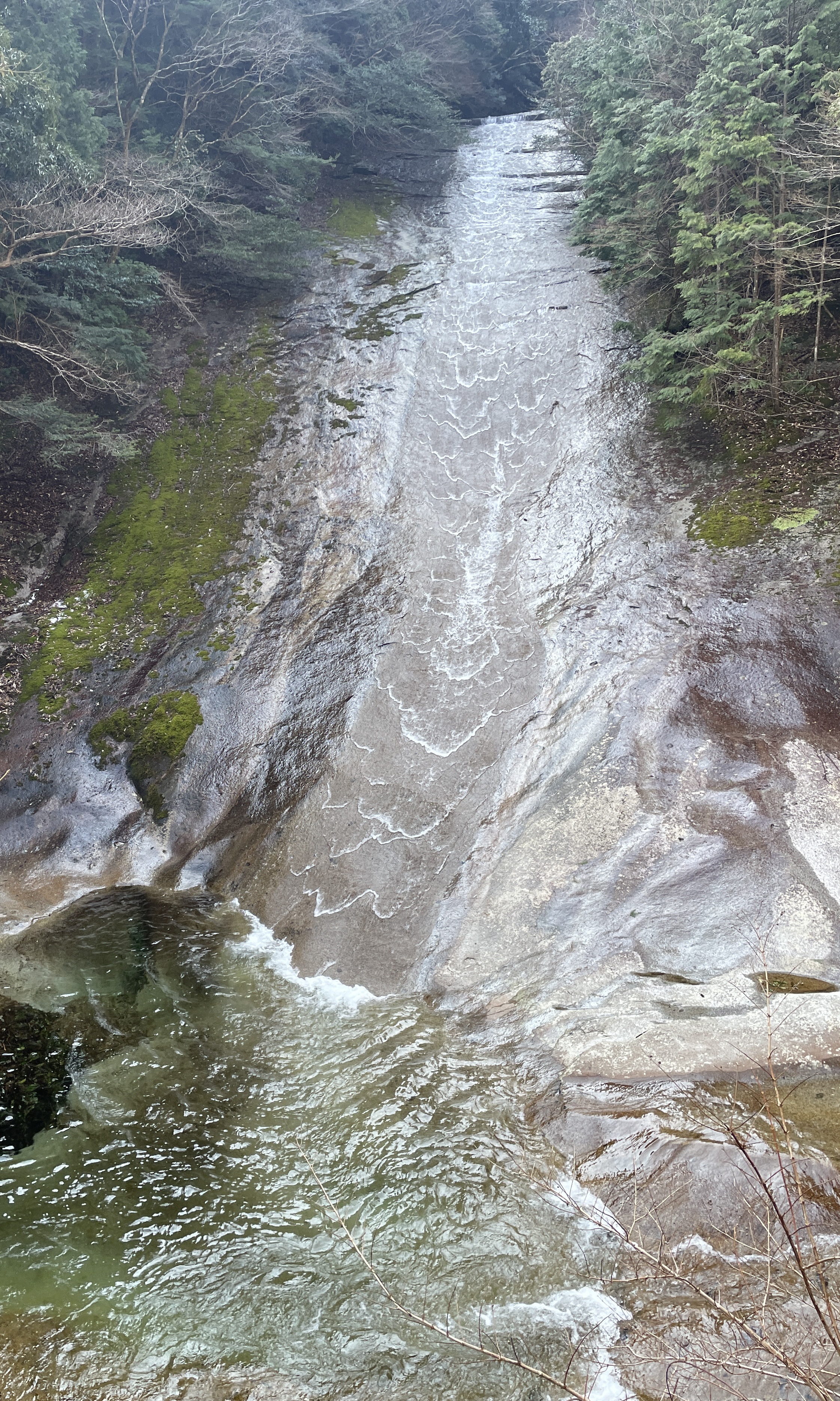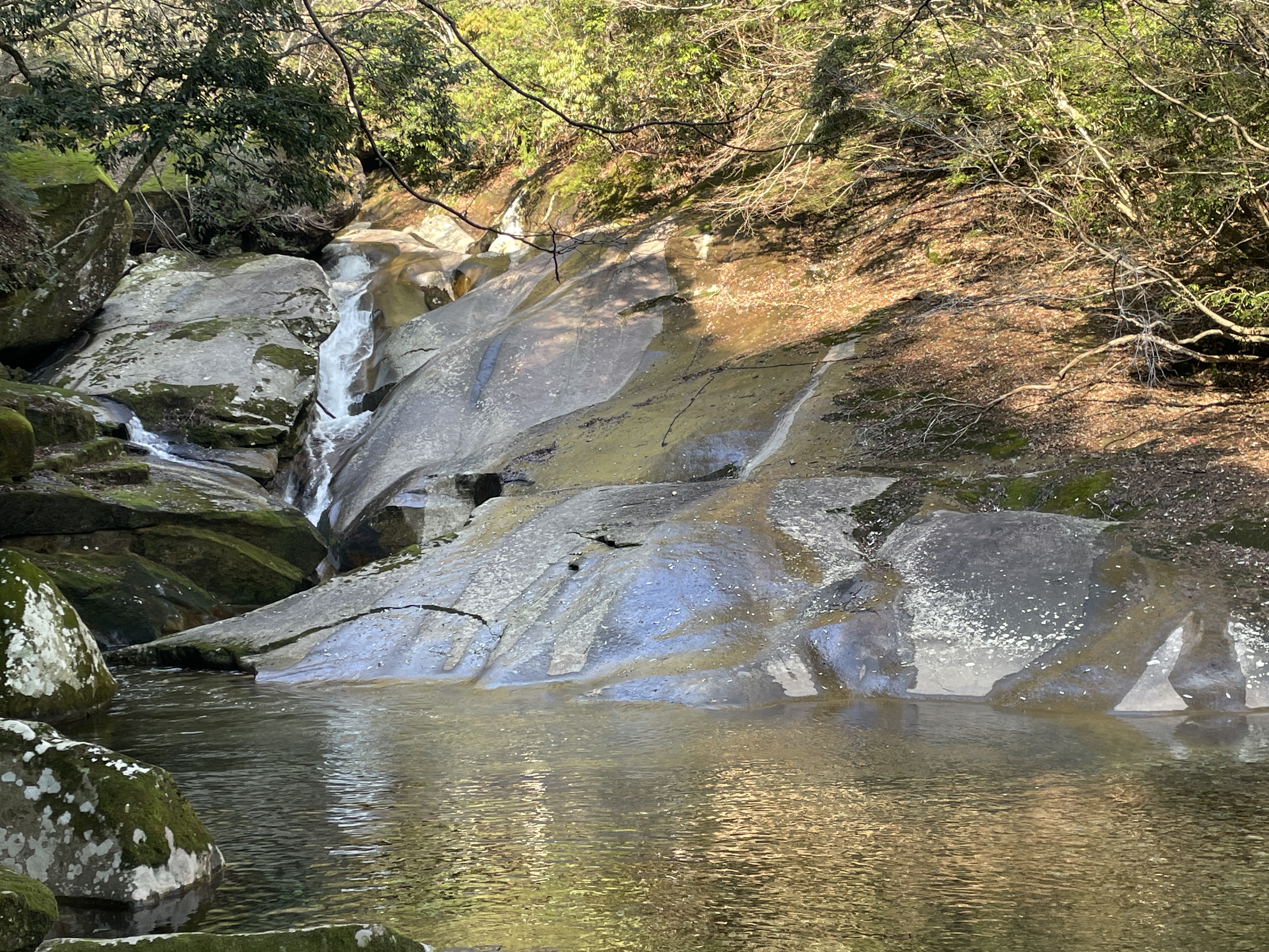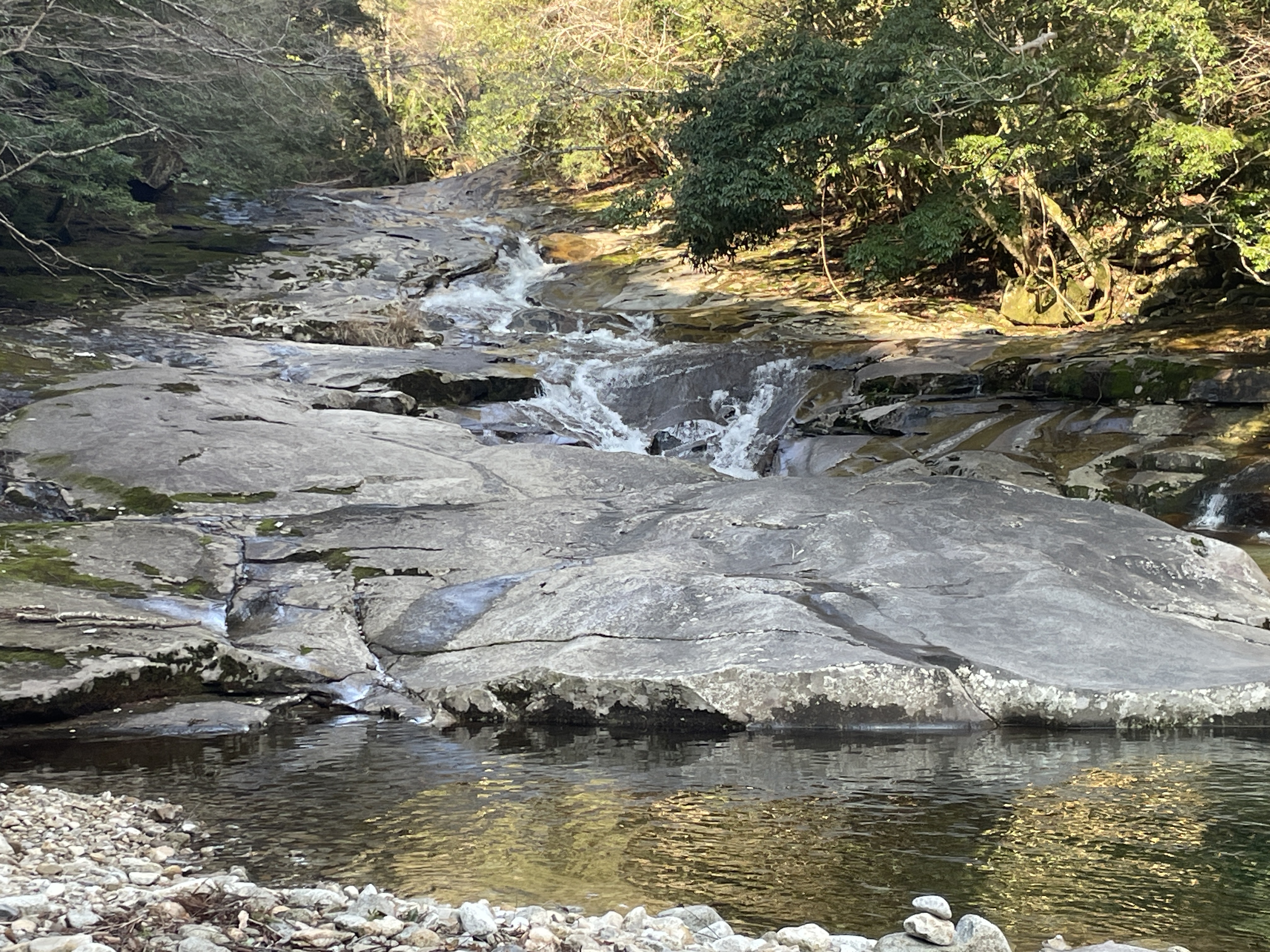 大きな一枚岩を流れる滝は見応えがありました