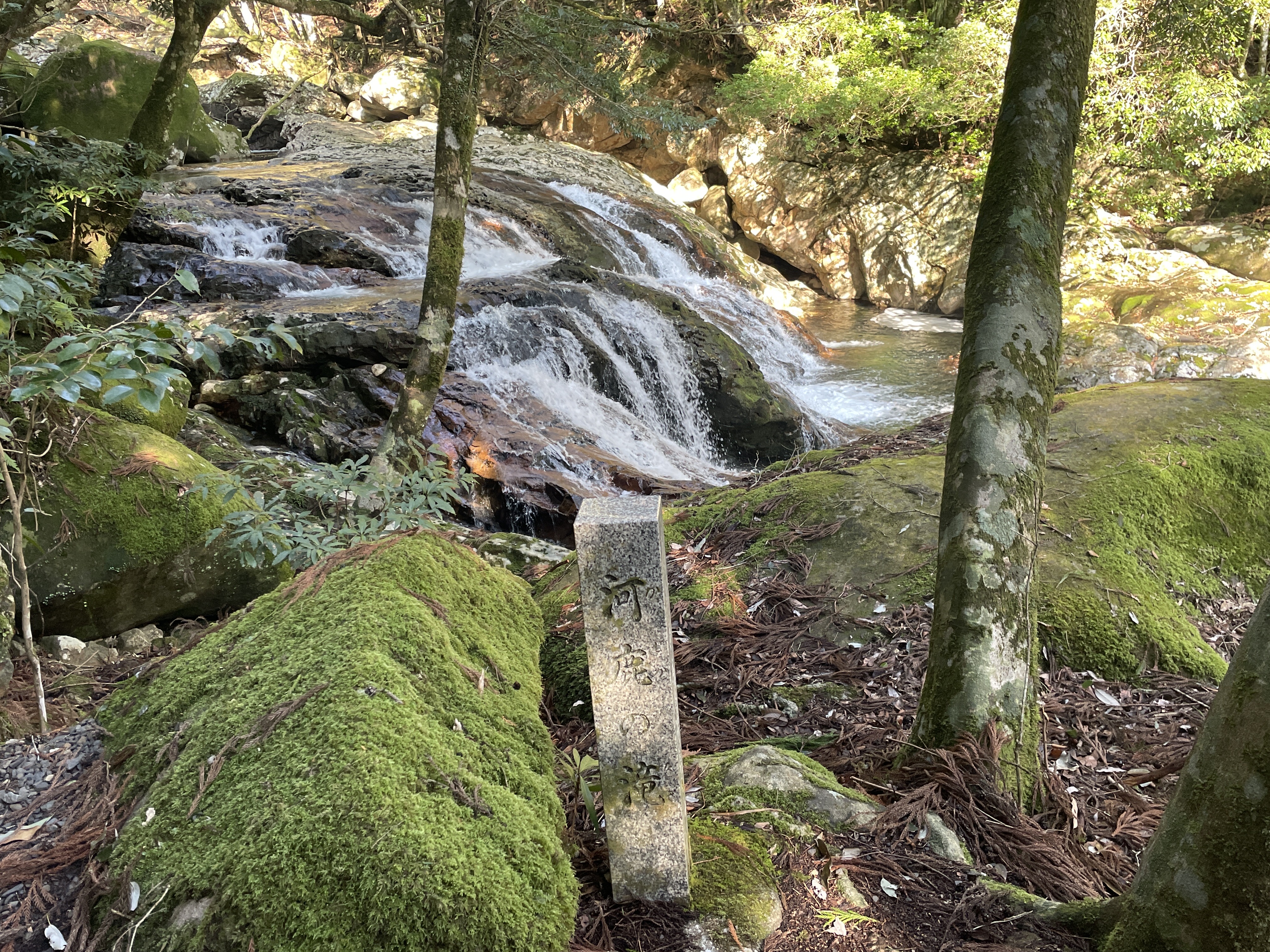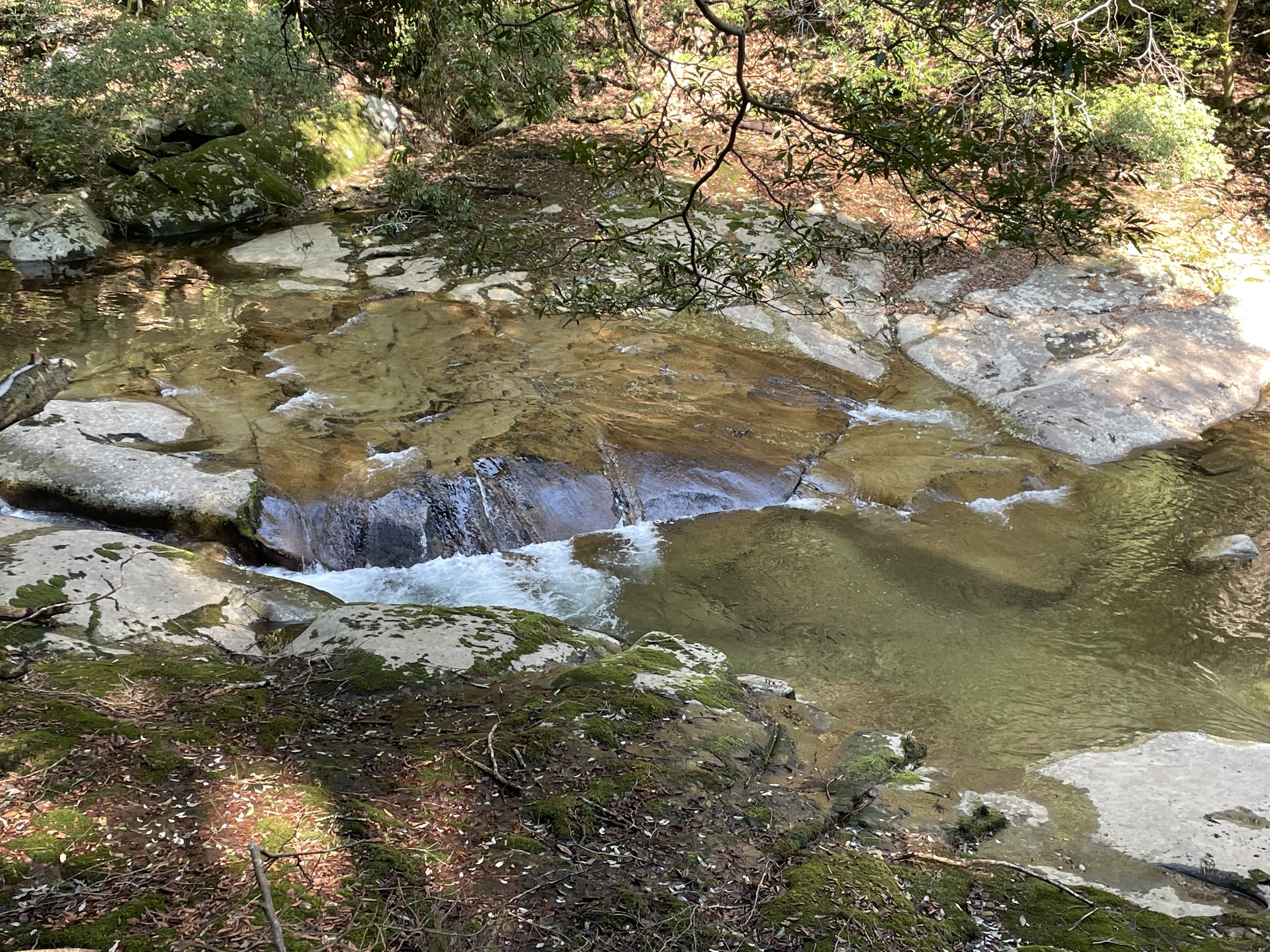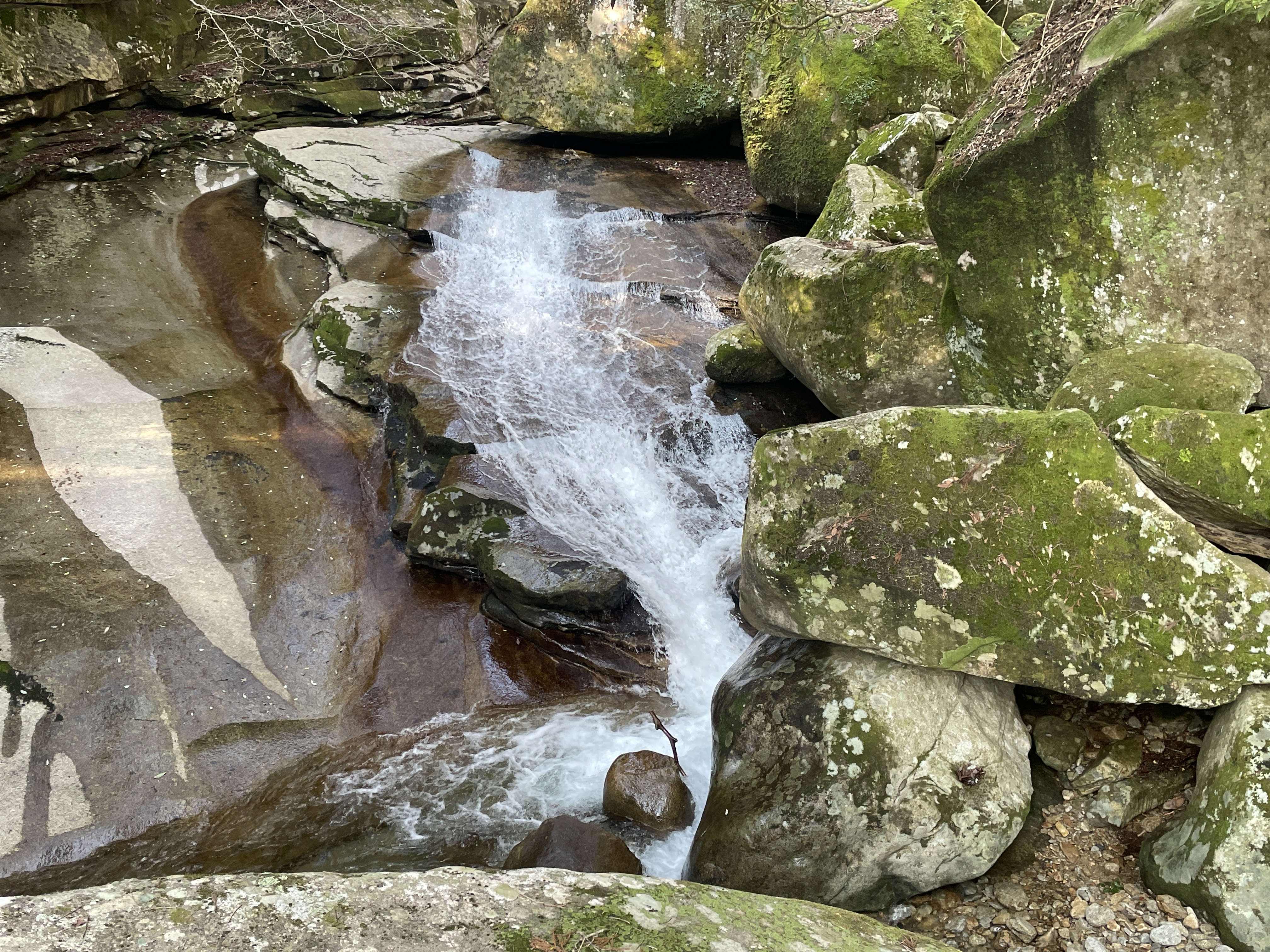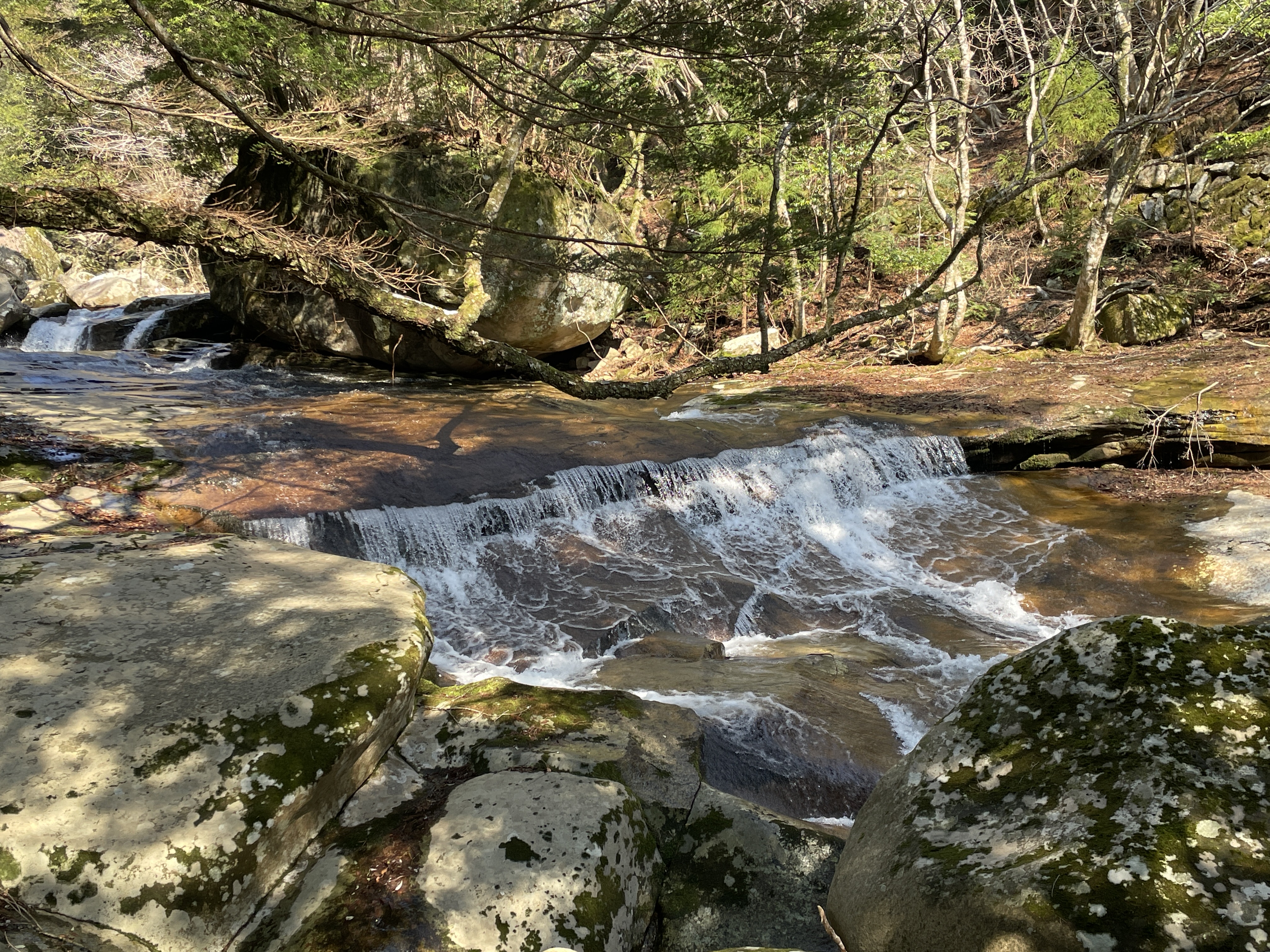 大きな一枚岩を流れる滝は見応えがありました