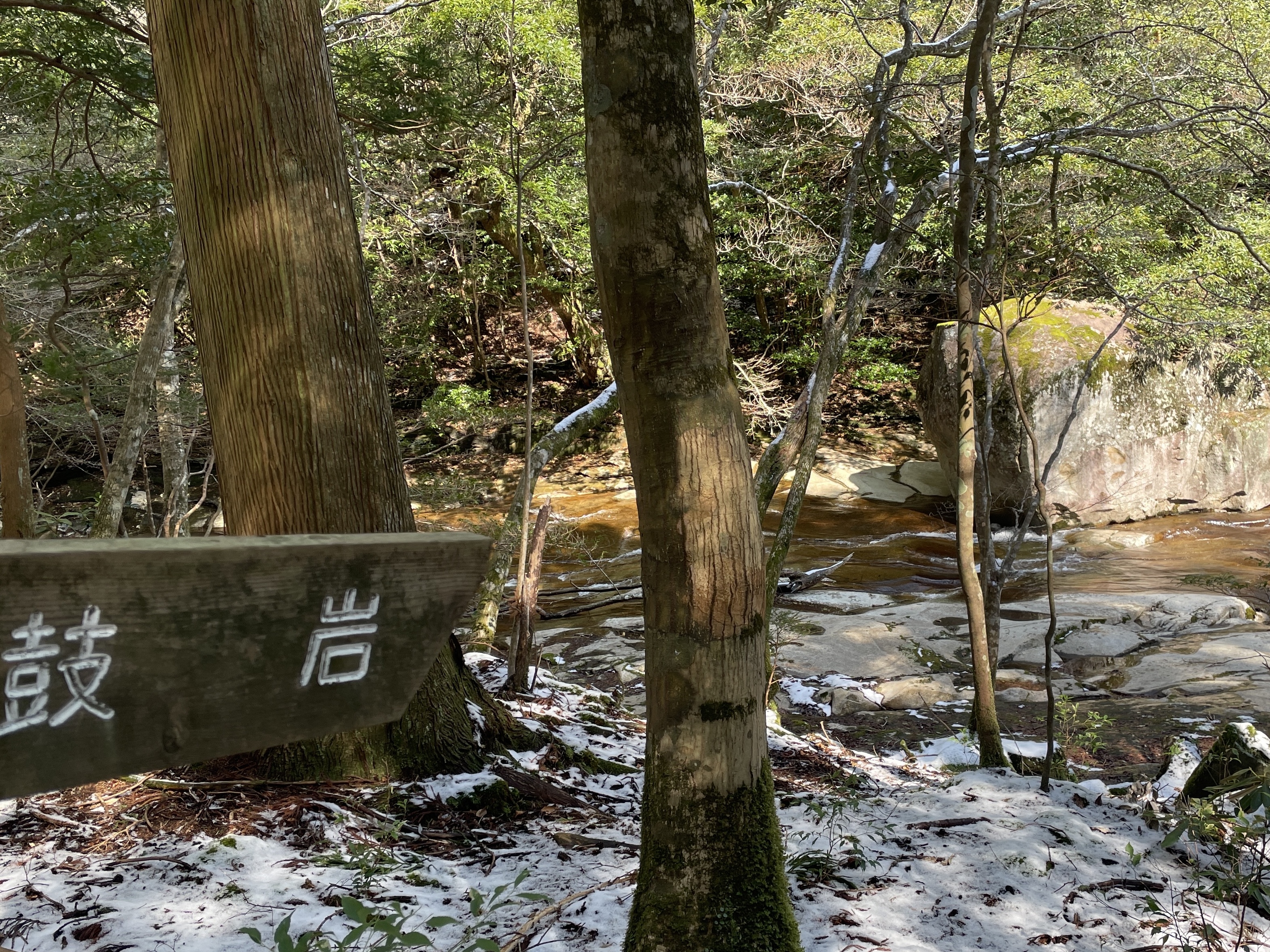 直前の寒波で雪が積もってる