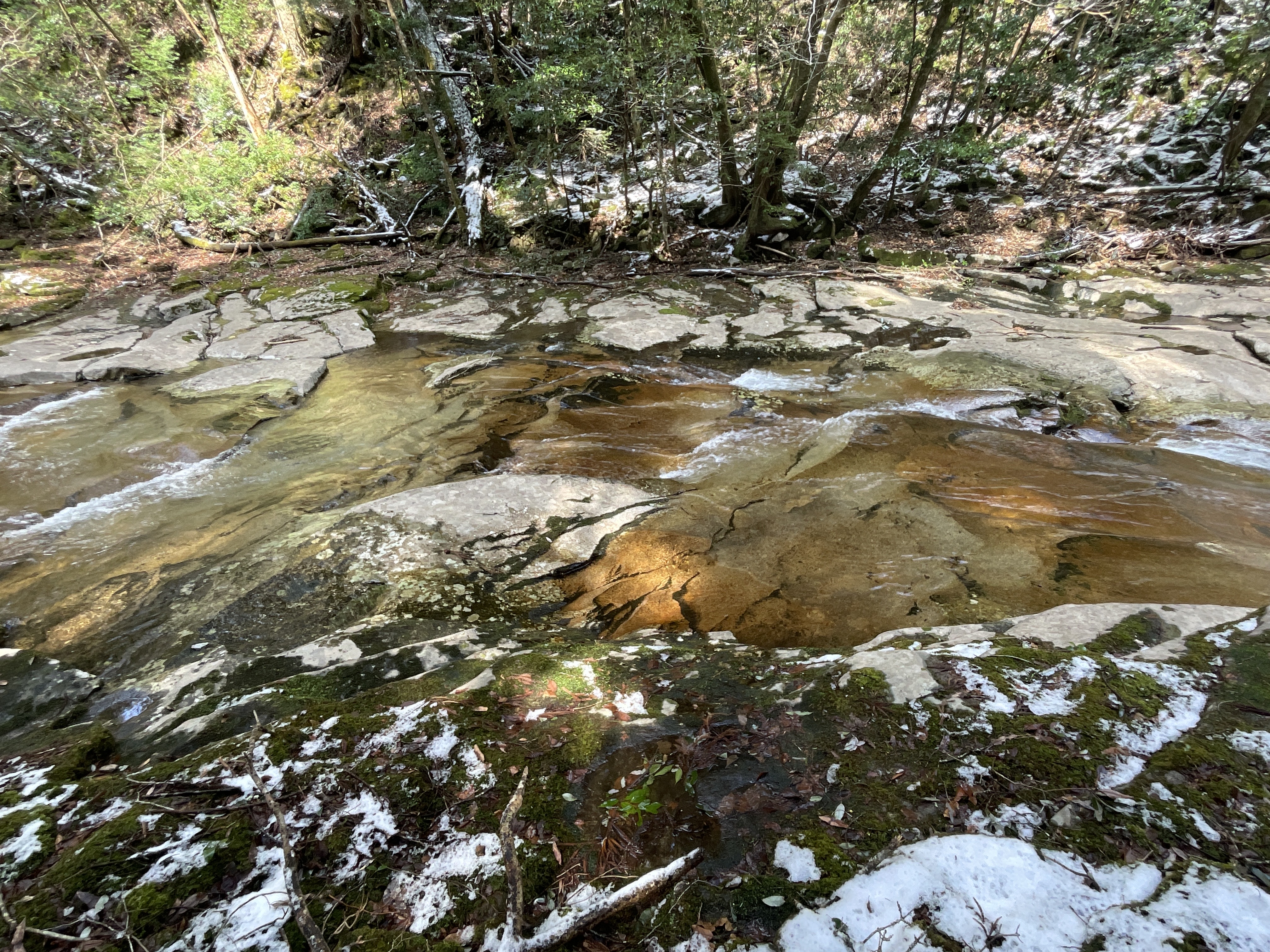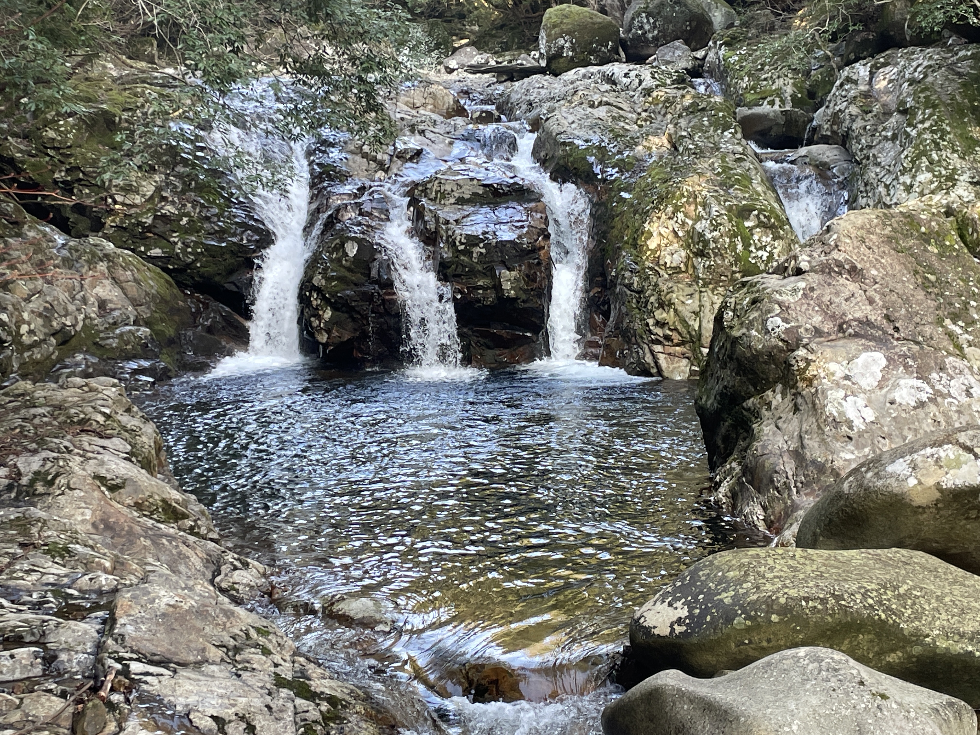 雪輪の滝の右奥にあるのが落合淵