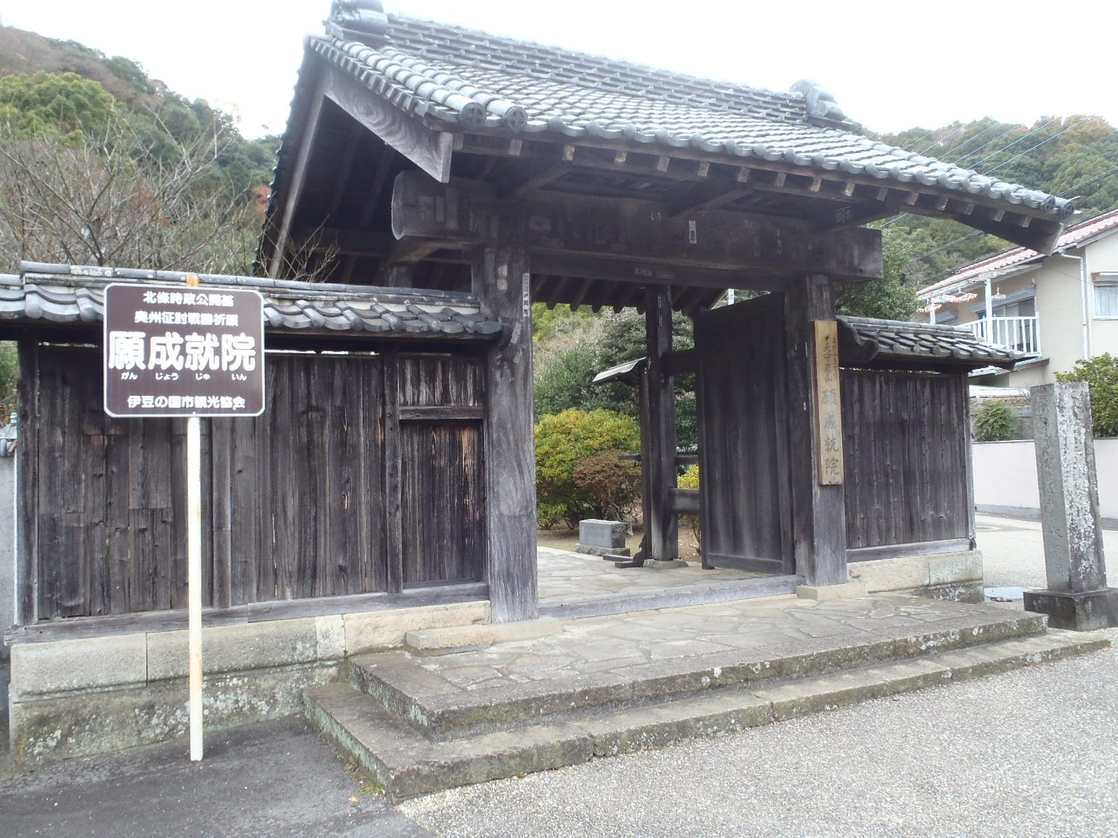 以前、テレビで放映した鎌倉時代の仏師。「運慶」の仏像に興味を抱いて伊豆の国市の願成就院(がんじょうじゅいん)に行って来ました。鎌倉幕府の初代執権となった北条時政が建てた真言宗(開祖・空海)の古刹であります。北条時政公の御墓真言宗の開祖・弘法大師空海の像大御堂(おおみどう)に安置されている仏像に会いに行きます~今日は、女房と長女が一緒です。モミジの枯葉が小さな池に落ち、写る木陰にになんとも言えない趣が、、、大御堂と裏手の宝物館は撮影禁止のためカメラに収めることが出来ませんでしたがこの眼にしっかりと焼き付けてきました。拝観料は400円。入ってまず中央に本尊としてまつられる阿弥陀如来坐像、堂々としたフォルムが目をひかれます。右の毘沙門天像には運慶の躍動感にあふれた作風を感じます。更に左側に脇侍の不動明王と二童子立像。いずれも像内におさめられた銘札によって文治2年(1186年)運慶がつくったものと確証されています。この銘札は宝物館でみることが出来ます。日頃、仏像に出会う機会もありませんでしたが、期待通りの写実的で力強い実物を拝観、心動かされるものがありました。