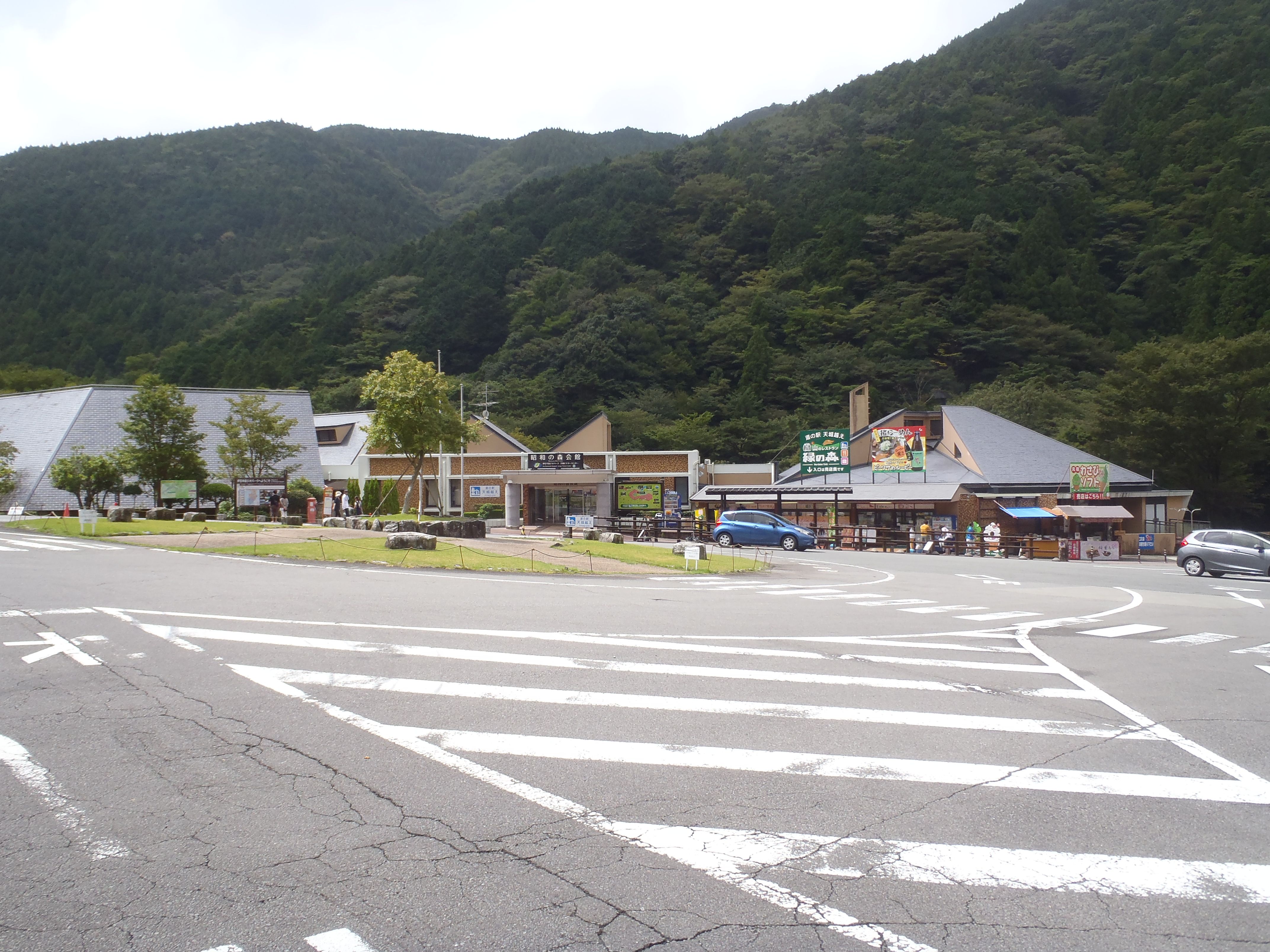 家を出る時は晴天だったが、伊豆の「道の駅天城越え」に着いたらでザァーと雨が降り出した。台風15号が近いせいだろう。少しやり過ごしたら陽が射してきた。クルマは道の駅に駐車してスタート。サラも一緒だ。ここから滑沢渓谷に沿った遊歩道を歩き、天城山の巨木、太郎杉まで2.2kmの散策コースである。わさび田を見ながら遊歩道、時々林道歩きをしながら、、。渓谷沿いの遊歩道を歩く~小雨がぱらつくが雨具を着るほどでもない。安山岩の1枚岩、滑り台のような滑沢だ!秋の紅葉の頃が良さそう~道端には、いま、マツカゼソウ(ミカン科)の群落が多い。小さく地味な花だが葉には気品がある。蒸し暑さでけっこう汗をかいて目的の太郎杉に到着だ。想像通りの推定樹齢400年の巨木である。残念ながらフェンスがあるので樹の根元までは入れない。なお、滑沢渓谷入口のバス停からも入れるが駐車場がないので、マイカーの場合は、道の駅から歩くしかない。
