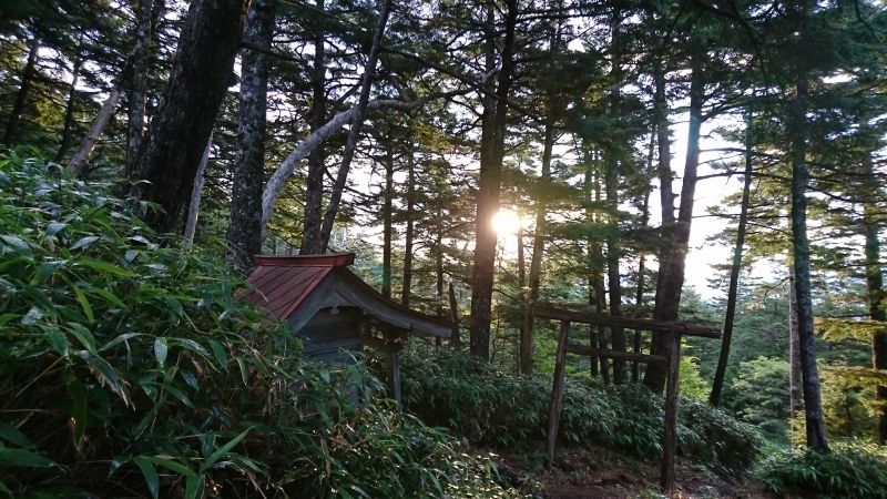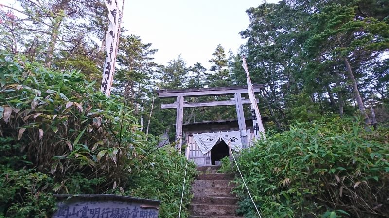 大江権現。登山道では時折お線香の香りがただよってきます。