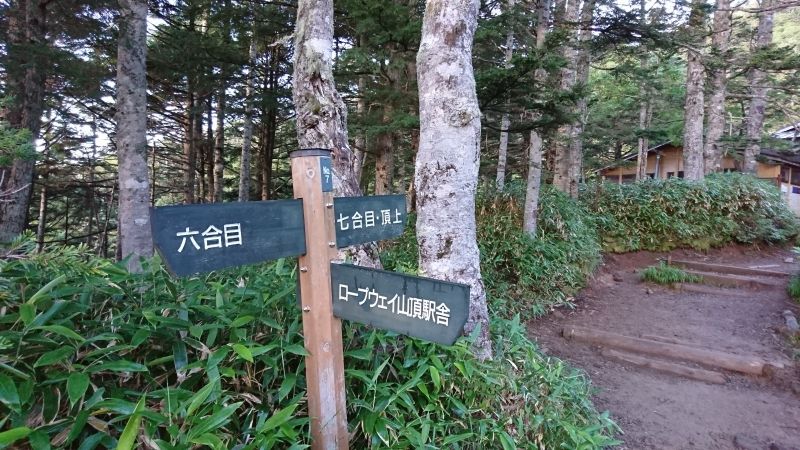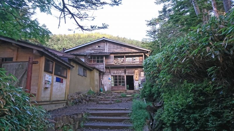 ロープウェイが動き出すのが6時なので、始発のお客さんが登ってくる前に行場山荘を通過するのが目標。