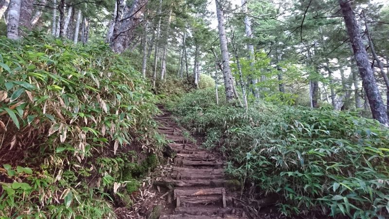 登山口入り口です。明らかに今までの山とは雰囲気が違います。身の引き締まる思いで登山