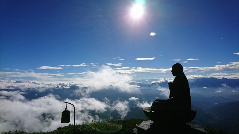 前の方を信者の方が登っているのでしょうか。人の姿は見えないのですが念仏らしきもの