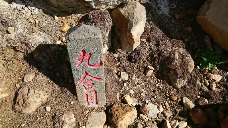 近くの山を眺めながら岩場を行きます。等間隔で岩にマーキングがしてあるので見落とさ