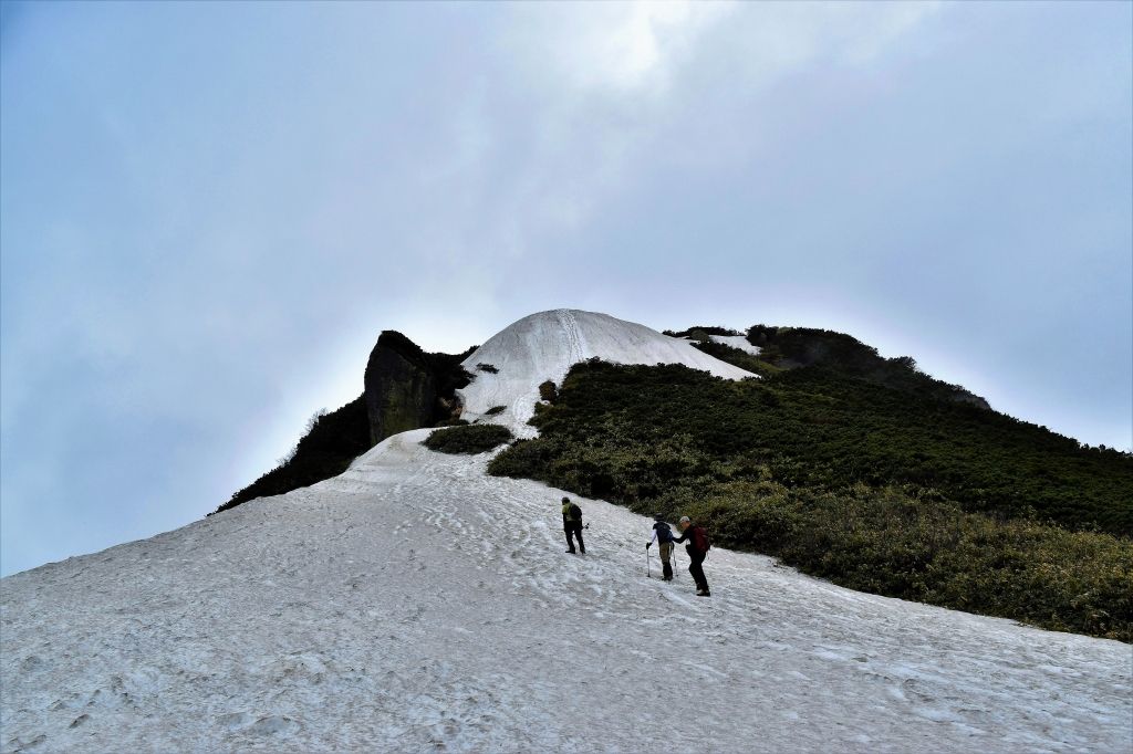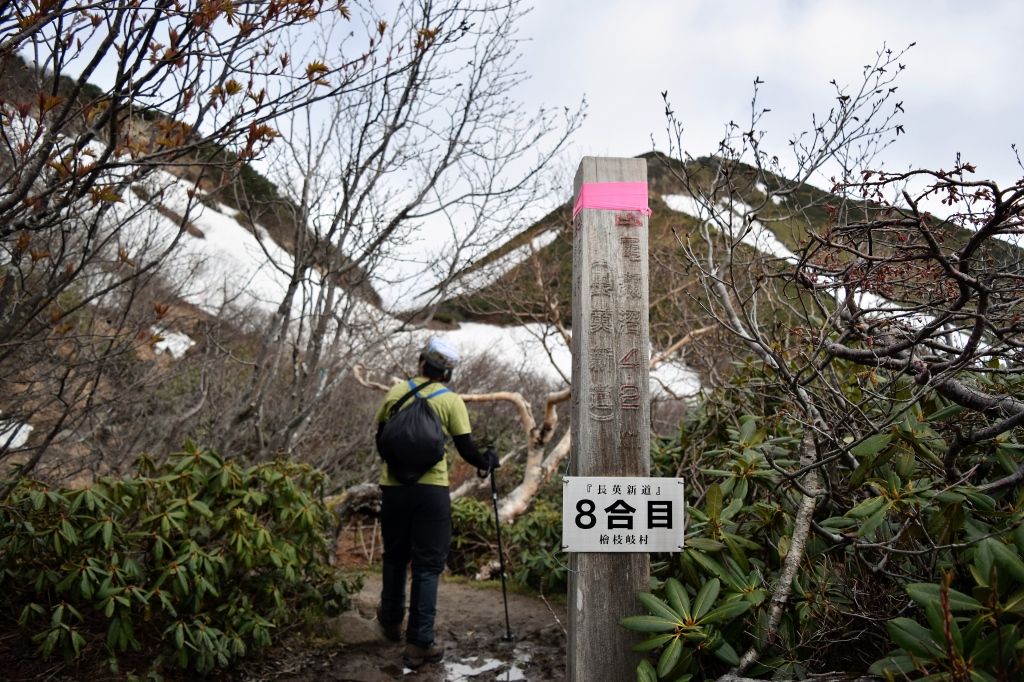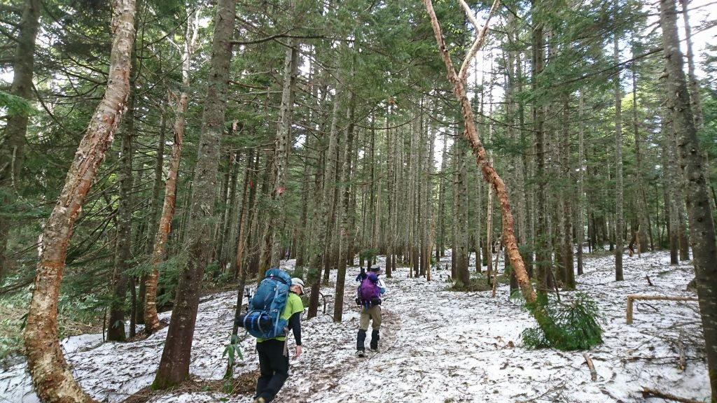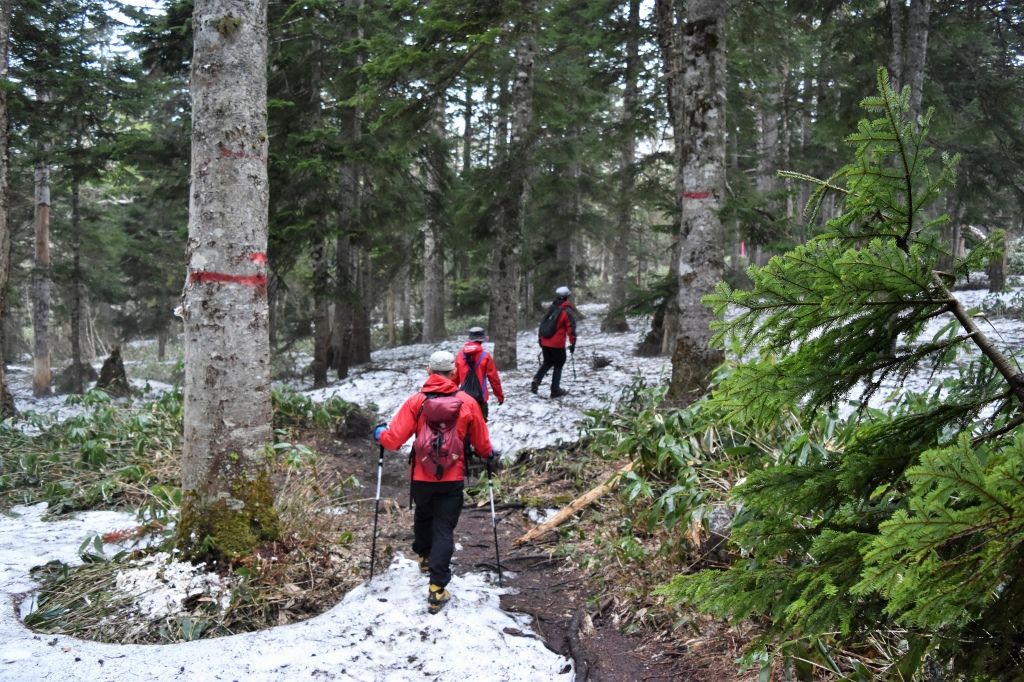 標高上げてくと、どんどん残雪地帯が増えてくる。