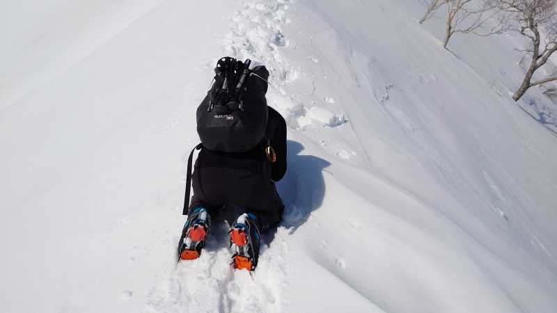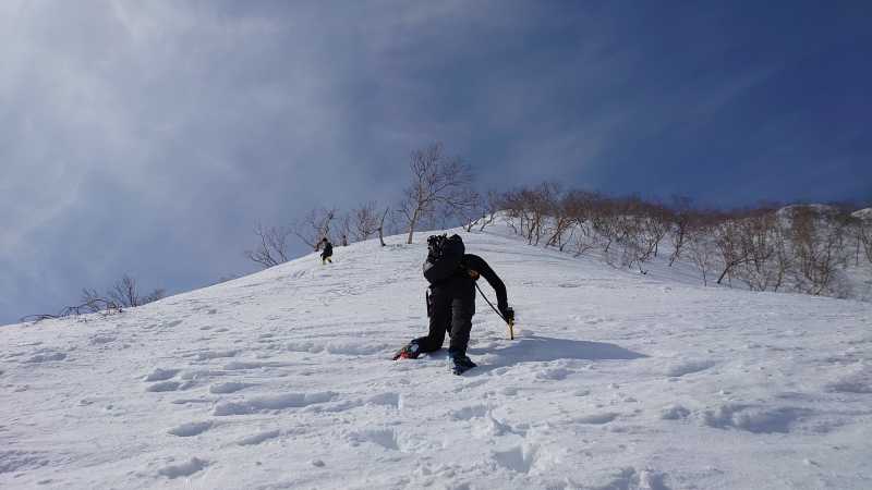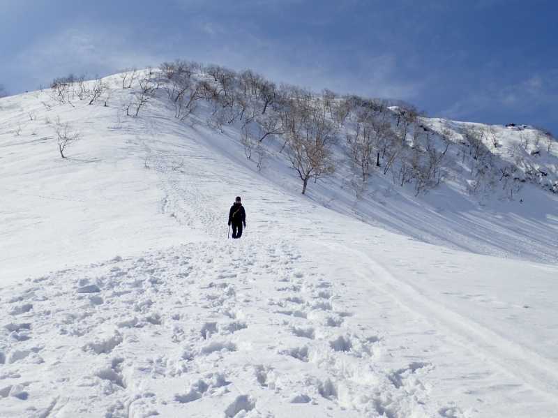 先行者の方の踏み跡を使わせていただきながら、でもあまりにキツイ登り。