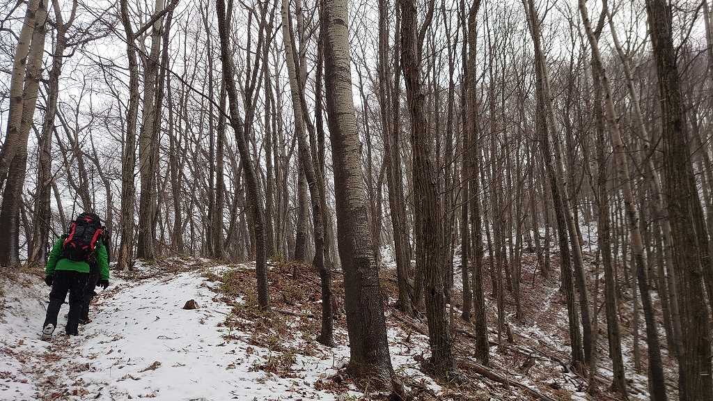 ゆっくりゆっくり登っていき、傾斜出てきたのでアイゼン類装着。