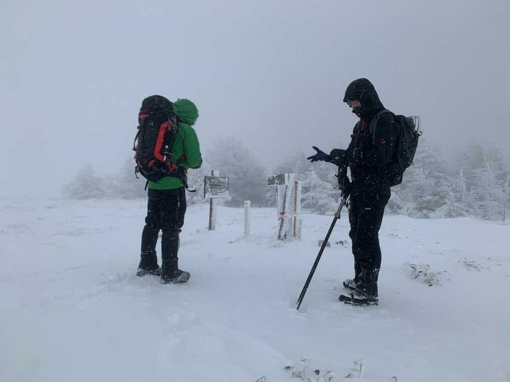 後で山頂での雪の状況を見る限りではチェーンアイゼンがちょうどよいと感じました。