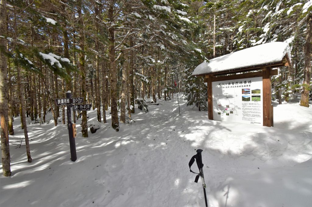 麦草ヒュッテ正面からメルヘン街道を渡った所に登山道