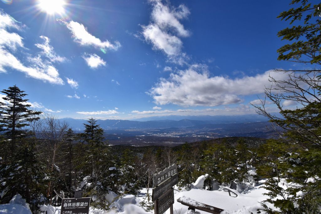 頂上では展望はありませんが、少し歩いた所に展望台が