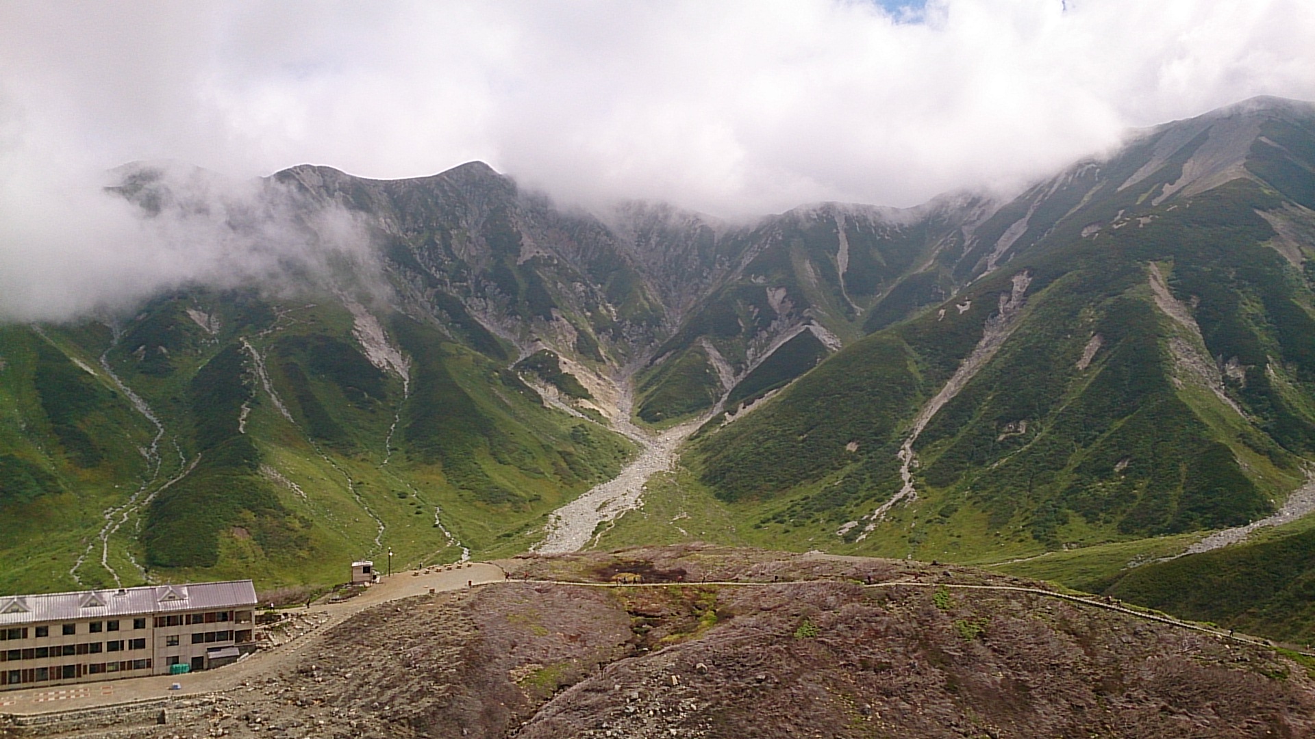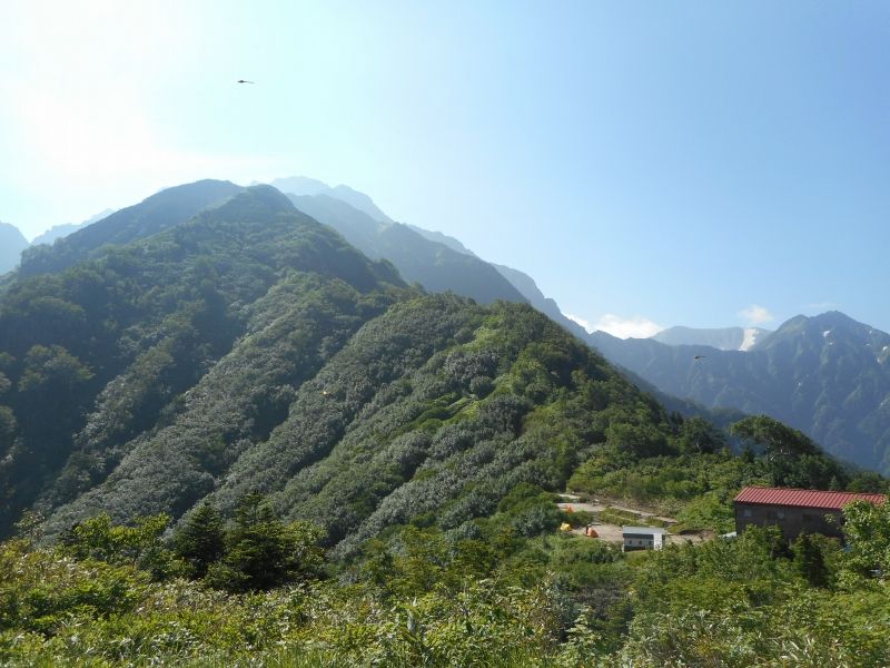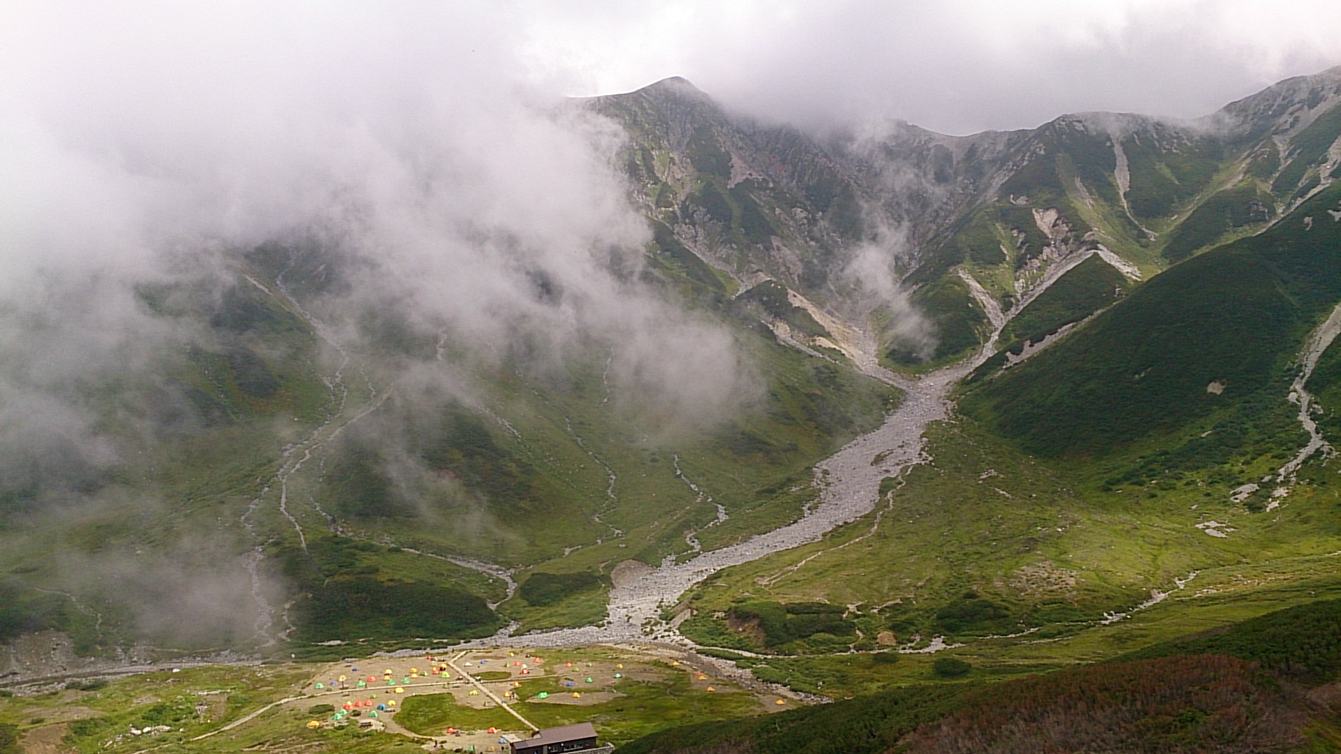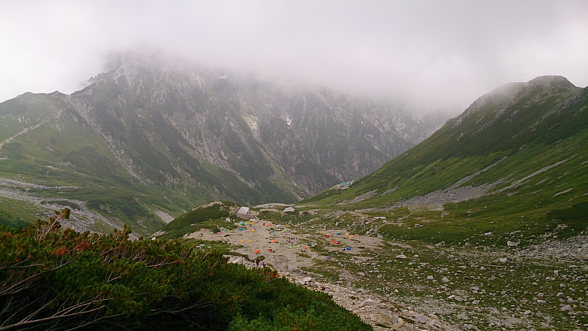雷鳥沢のテント場が見えました。立山に囲まれ