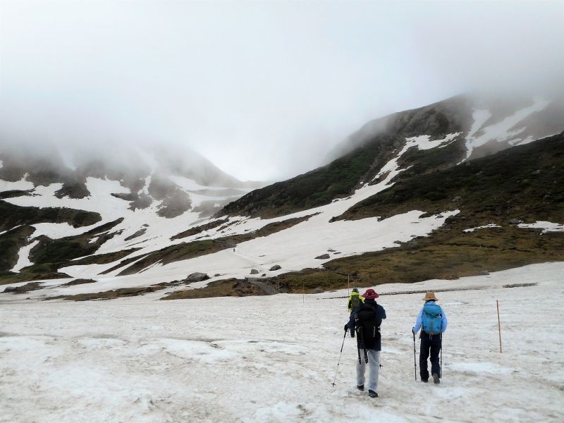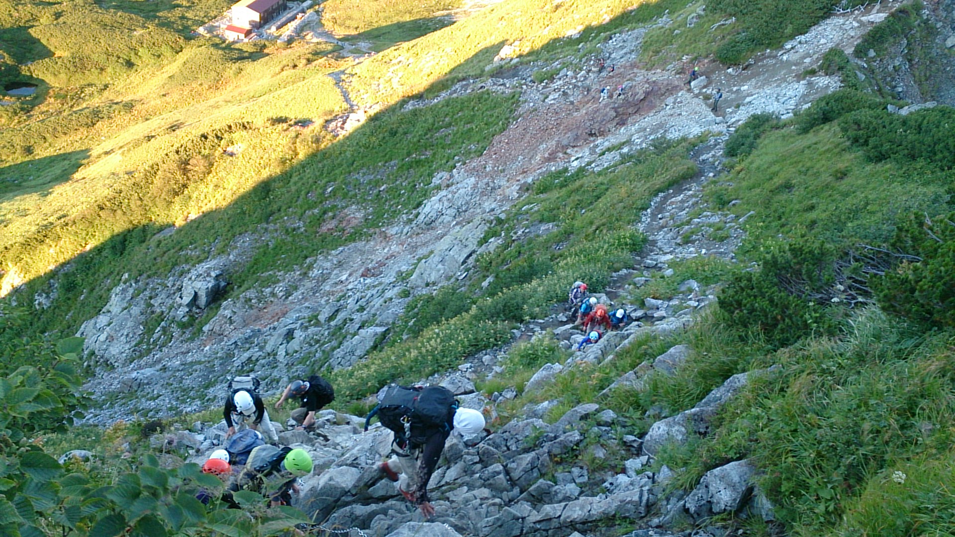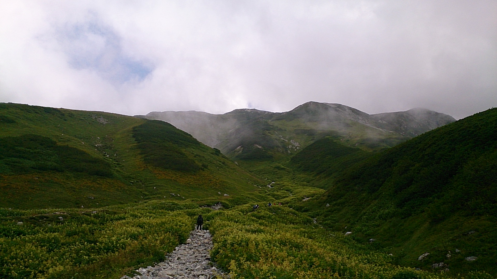 雷鳥沢のテント場を過ぎると、いよいよ登り道が