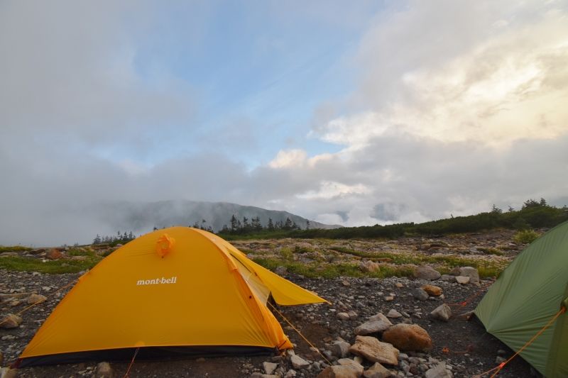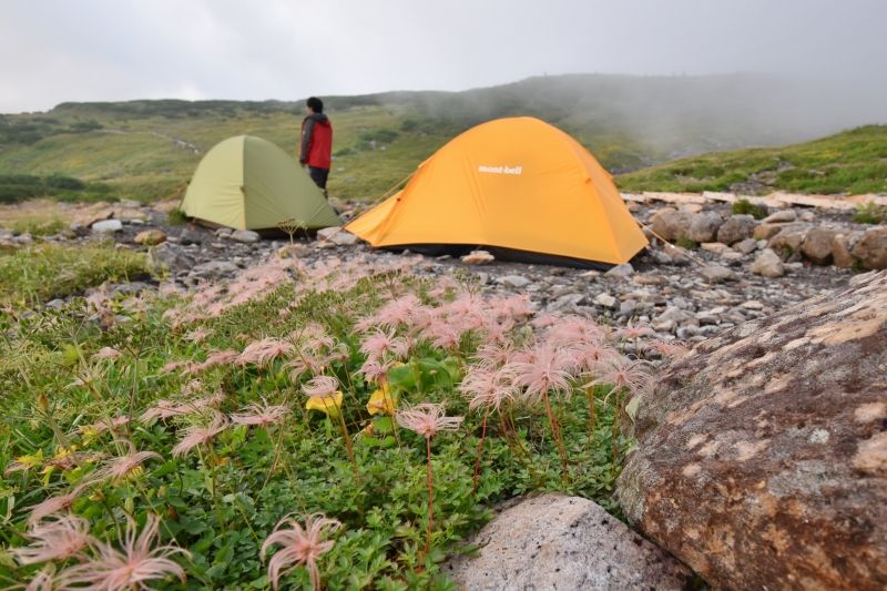 ここのテント場はチングルマが傍に咲き乱れる最高の場所。