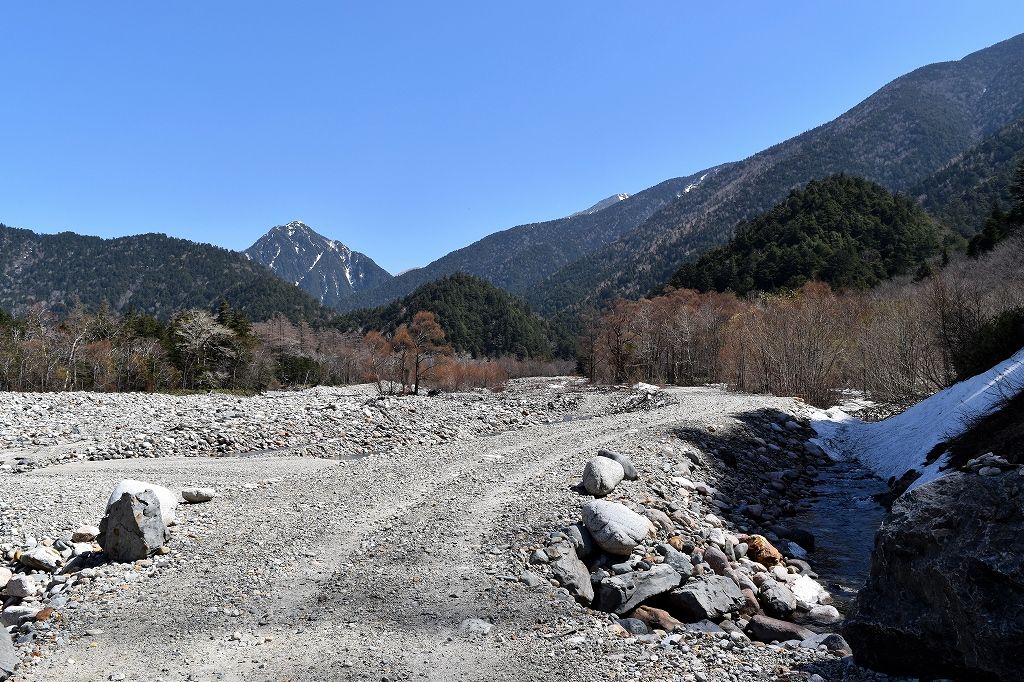 川沿いを歩いていきます。槍方面に歩いていくのは