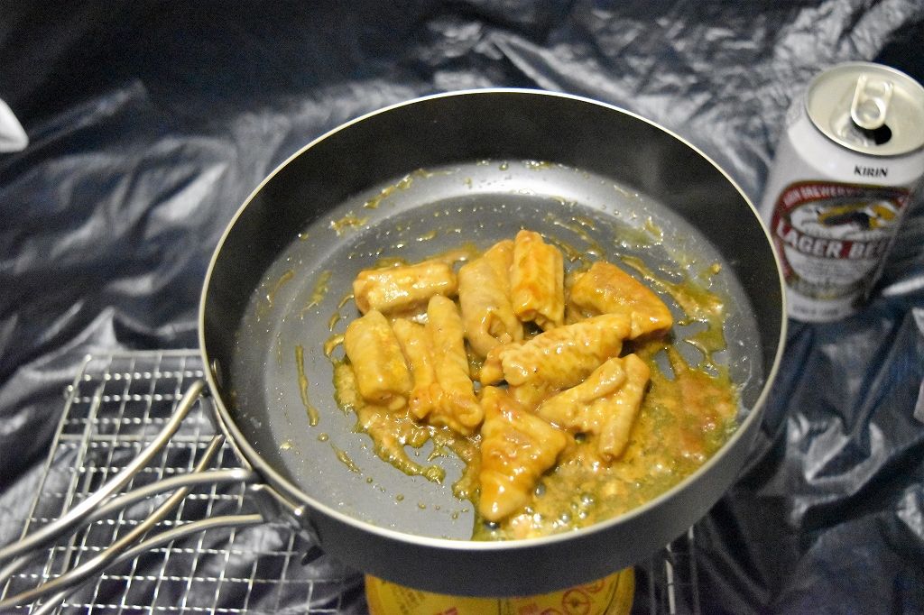 まずはご飯を炊きながら、モツの味噌バター焼き&