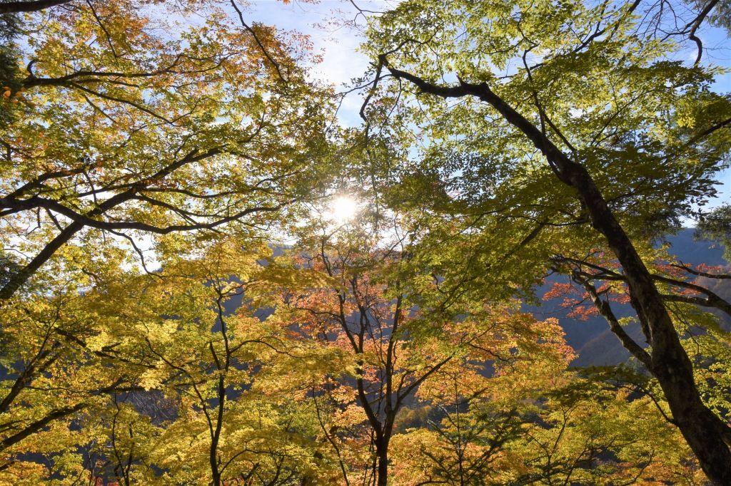 頭上の紅葉、足元の落ち葉、見る所だらけで足を