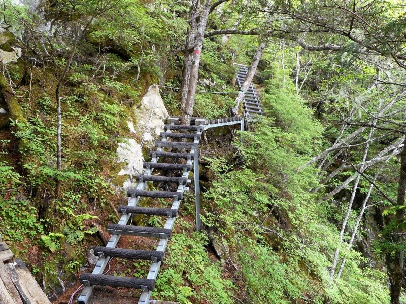 ここから七丈小屋まではハシゴ・クサリ場地帯。