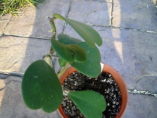ハートリーフ 購入時の名札には、『ハートフルホヤ』と、明記されていたけれど 葉は非常に大きくハート型 一枚のタイプは良く見かけるけれど、(100均にあるよね。) このタイプは、吊るを伸ばし成長するよ。 長いもので、120cmの高さのをを見たけれど、良かったよ。 欲しかったけれど、手が出なかったな。 小さくても、前から 気になっていた、この子ひとつ*\(●~▽~●)У 本によると サクララン属・ガガイモ科になっている 花も可愛らしい花が咲くのである 我が家はまだまだ、花までは、遠い道のりだけれど まずは、絶やさないように努力しなければ・・・ 本によると、花の感じは、:*:。.:*:・'゜☆。.:*:・。 なんとなく『ランタナ』の花に似ているかな? 何年ヵ後、花が咲いたら、ラッキーです!!
