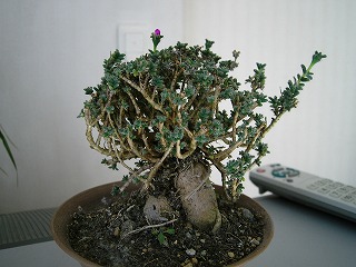 姫紅小松 =>別名 小松波 とげ状のうぶげの生えた鮮やかな緑色の小さな葉を蜜につけ、 分岐して茂る、茎のように見えるのは、塊根で、わざと 地上部に出して植えている。 刈り込みにも強く年を経る事に塊根が、松の根のように肥大化する ので、盆栽のように仕立てる事が多い。 春から秋にピンクの花を咲かせる 多肉って、ホントにいろいろな種類がありますよね 可愛い花でした。 ・:*:・( ̄∀ ̄ )。・:*:・ (塊根とは)養分を蓄えた塊状の根。さつまいも・ダリアの根などです