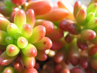 今日は、とってもよく似た4姉妹を、紹介しますね なんとも、愛くるしい艶 頬そめた顔 セダムのこの子達 まずは、虹の玉 水と肥料をひかえめにし良く日に当てれば、夏でも鮮やかな色 をだす。 与えすぎると触った時に葉が落ちやすくなる。 春から夏に葉ざし・さし芽で、ふやす。植え替えは、春から夏 次はオーロラ 虹の玉に比べると、多少熱さに弱く斑入りの為葉焼けもしやすい そして八千代 あまり本でも、見たことがないのですが、コレもセダムかな? 最後は、乙女心 軽くカーブした刃先の丸い棒状の葉をもち、よく日に当てると 若緑色の葉の先がほんのり赤みを帯びる 肥料が切れてくると全体が黄色を帯葉先の赤色が鮮やかになる 葉ざしは出来ないので、春から夏にさし芽で増やす いかがでしたか? 楽しんで頂けましたでしょうか。 そうそう、もう直ぐアクセス5000に、突入となります。 ココまで、いろいろ応援して下さった皆様ありがとうございます これからも、宜しくです。(*^▽^*)ゞ 果たして キリ番は、どなたに・・・・・・・