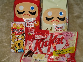 今年も、やってきました、受験シーズン お店に、売られていたので、娘の応援に一役。 キャラメルコーン 今だけカナエルコーン キャラメル味の赤ダルマ・ミルク味の白ダルマ コアラのマーチ コアラは、木から落ちないんだって・・・だからか! キットカット=>きっと勝 応援メッセージ入り 夜も頑張って12時ごろまで、勉強している。 眠くて先に寝ちゃう事もある。ひどい母、(スミマセン) 今までで、一番頑張っています。ヽ@(o・ェ・)@ノ 当日は頑張って欲しいです。 とにかく今は、家族みんな、風邪を引かないように 健康管理と勉強しやすい環境ずくり 後は、本人に委ねるところですね