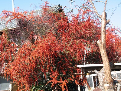 今日、ちょつと時間が、とれたので、 近くに住む妹宅に、御土産持ち、主人と一緒に訪問です。 車を止めたら、目の前に、綺麗に色ずいた なんでしょう? ピラカンサの木かしら・・・? 鳥も来て、実を突いていました。 (目をこらして見たら、鳥が見えるかもよ・・・・) お宅に、着いたら、まずは:たまちゃん:に、ご挨拶 この子、おとなしいんです。ちよっと、最近元気がないらしい。 お土産は、バラの花束・肉まん・豚足 バラの花束は、綺麗だったので、家にも同じものを購入 豚足。前は無理。外見が、グロテスクで、キモクて、 食べられなかったんですが、最近は、主人がおいしそうに食べれる ので、つられて食べれるようになりました。 女性には、コラーゲンたっぷりで、お肌に、よいのよ~ ぴっぴ ハウスによって、多肉ちやんを拝見して、 ジャイアントラビット? 黒兎耳? 頂きました。 帰りに、花屋によって、今年初めて、多肉をゲット 大型玉つづり 新玉つづりより 確かに、葉が太くて、長いぞ~。